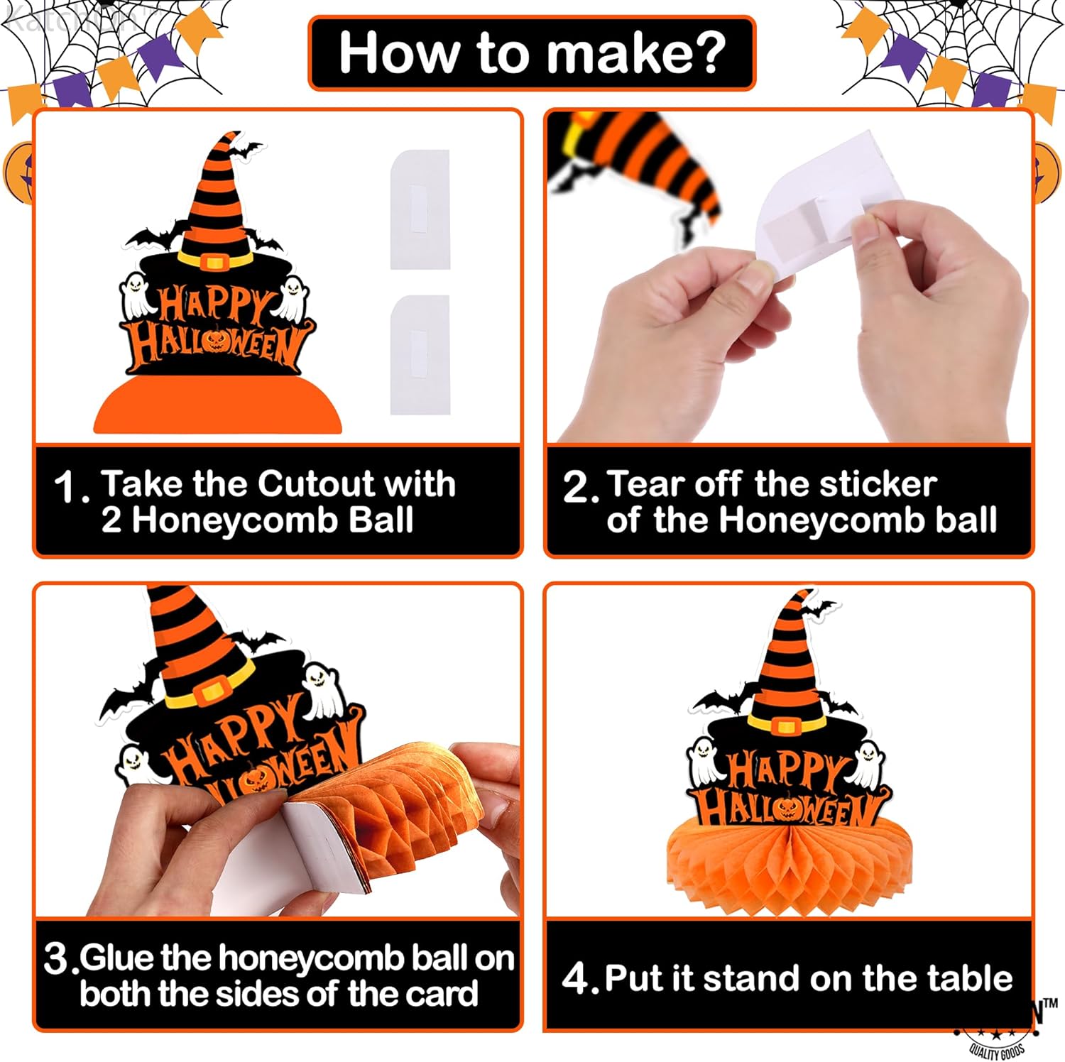 • PACK OF 9 | WITCHES HALLOWEEN HONEYCOMB CENTERPIECES : Get ready to elevate your Halloween party to new heights with our exquisite Halloween Pumpkin Honeycomb Centerpieces. They come in Standard Pack of 9, charming and versatile happy halloween decorations indoor are the perfect addition to your table, creating an enchanting ambiance for your guests. Let's dive into the magical world of these eye-catching halloween table centerpieces. Perfect halloween table top decorations