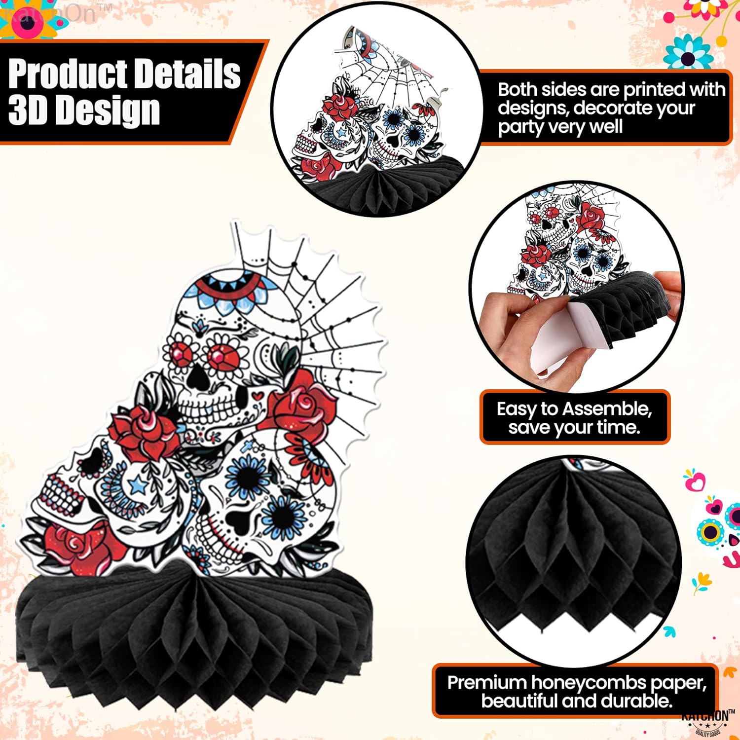 KatchOn, Day of The Dead Centerpieces - Pack of 12 | Halloween Centerpieces, Day of The Dead Decorations | Halloween Honeycomb, Day of The Dead Halloween Decorations | Dia De Los Muertos Decorations