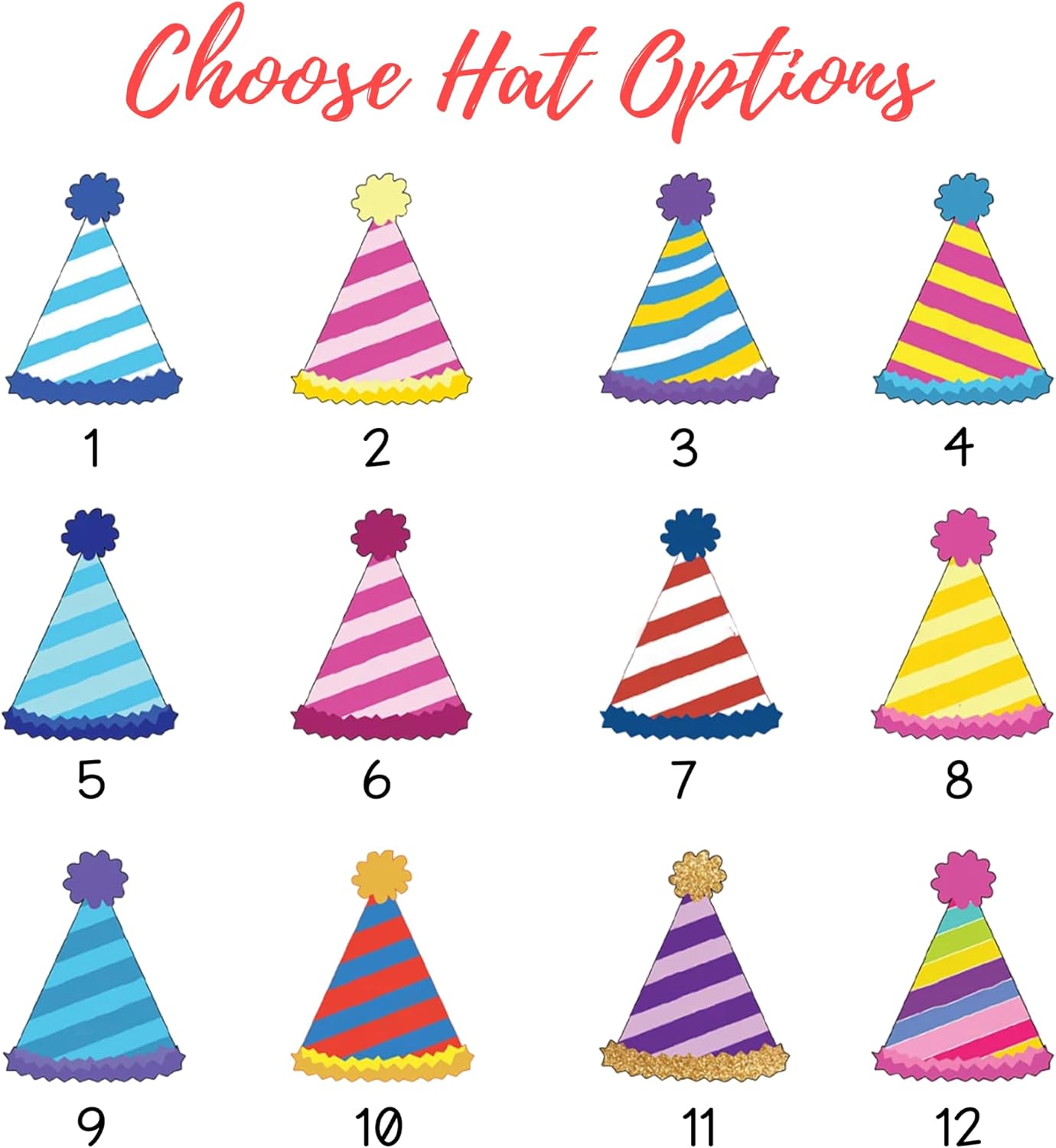 • Customize: You have the creative freedom to choose the image of your face, ensuring it captures their personality perfectly. Additionally, you can select the hat birthday color and size of the stir sticks to match your event's theme seamlessly