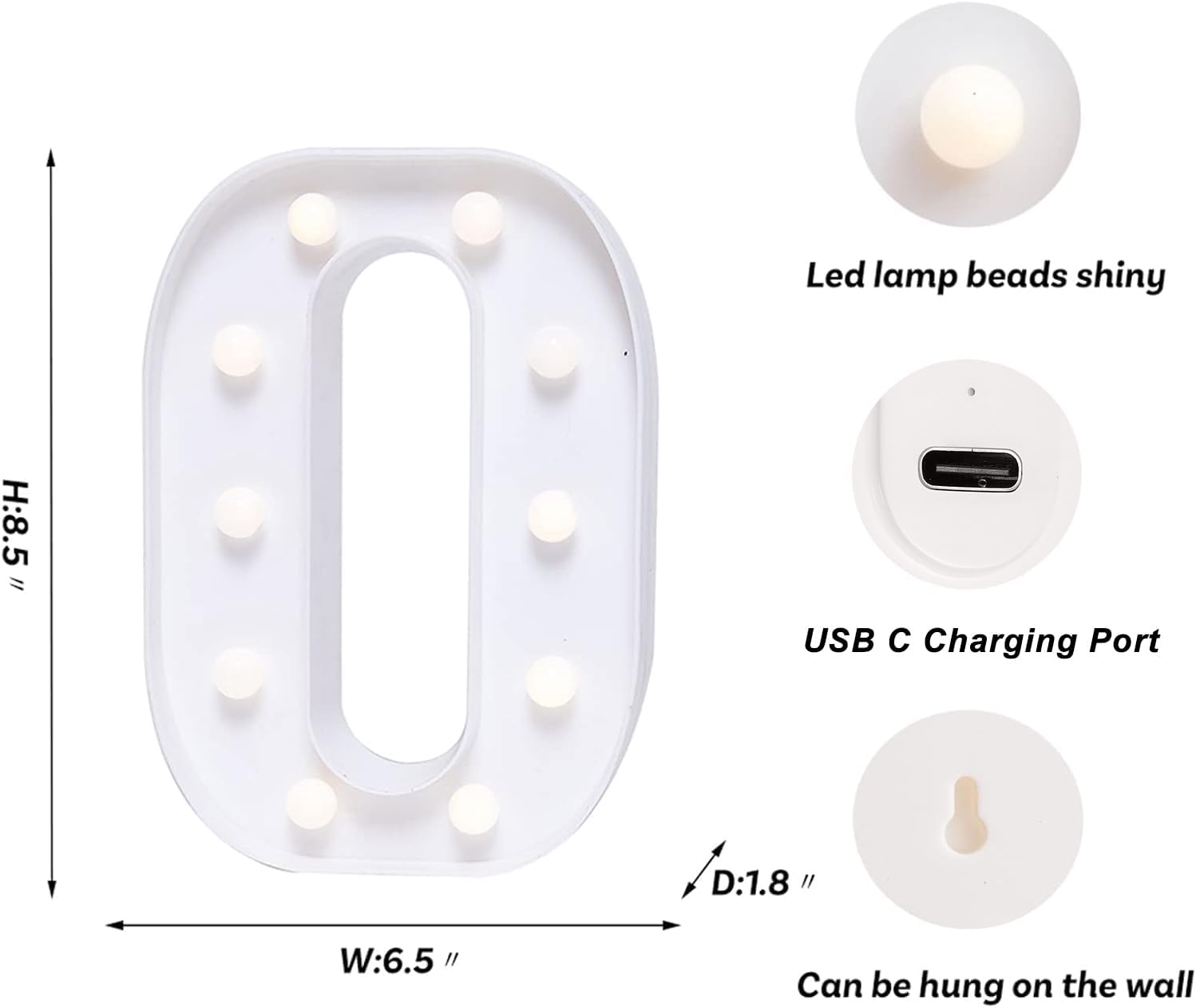 Foaky Rechargeable LED Letter Lights Sign Marquee Light Up Letters Sign for Night Light Wedding/Birthday Party Christmas Lamp Home Bar Decoration (O)