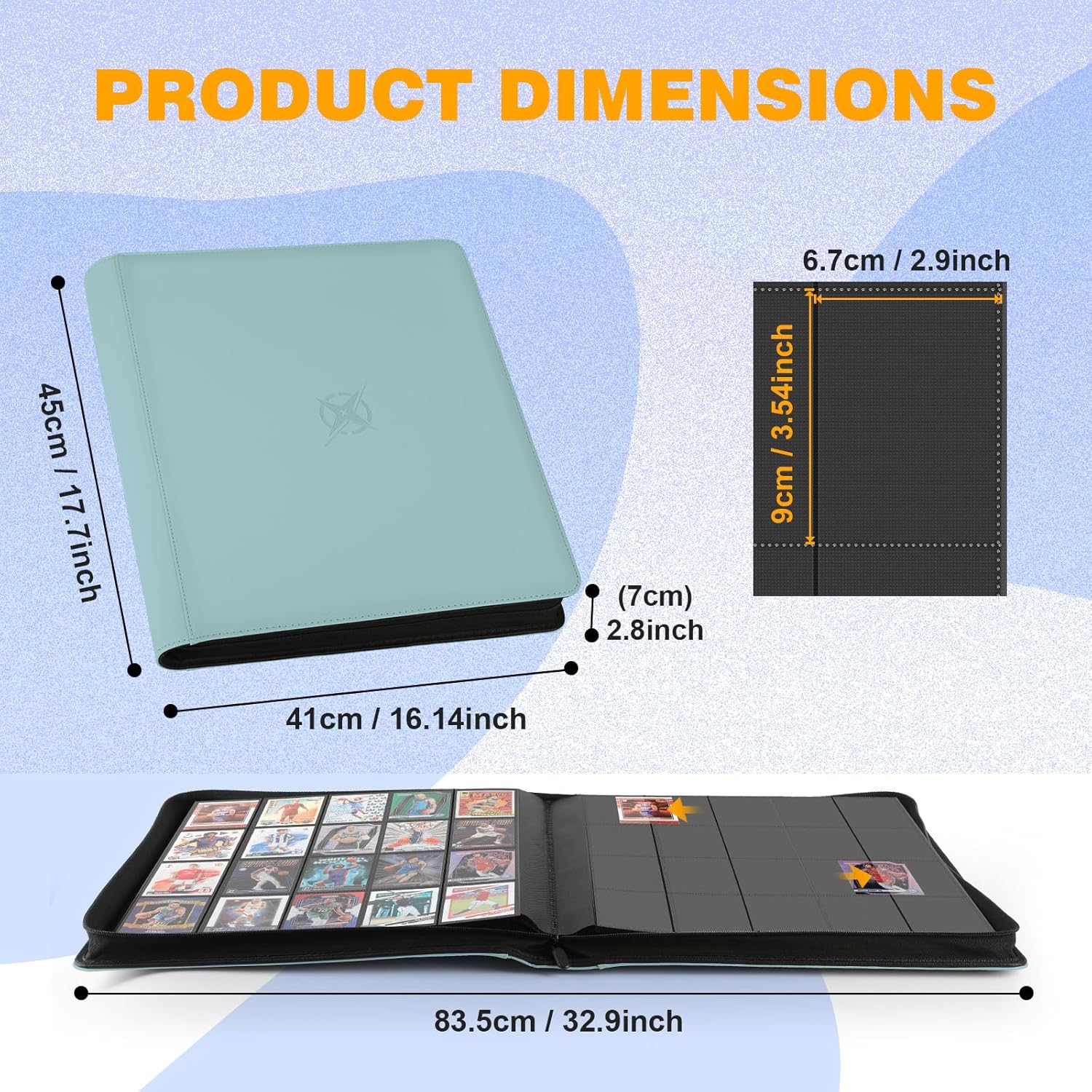 • 💎【Secure Zipper Closure:】Equipped with a smooth zipper, this card collection binder effectively guards against dust and moisture. Your valuable cards stay protected inside this reliable binder for cards.