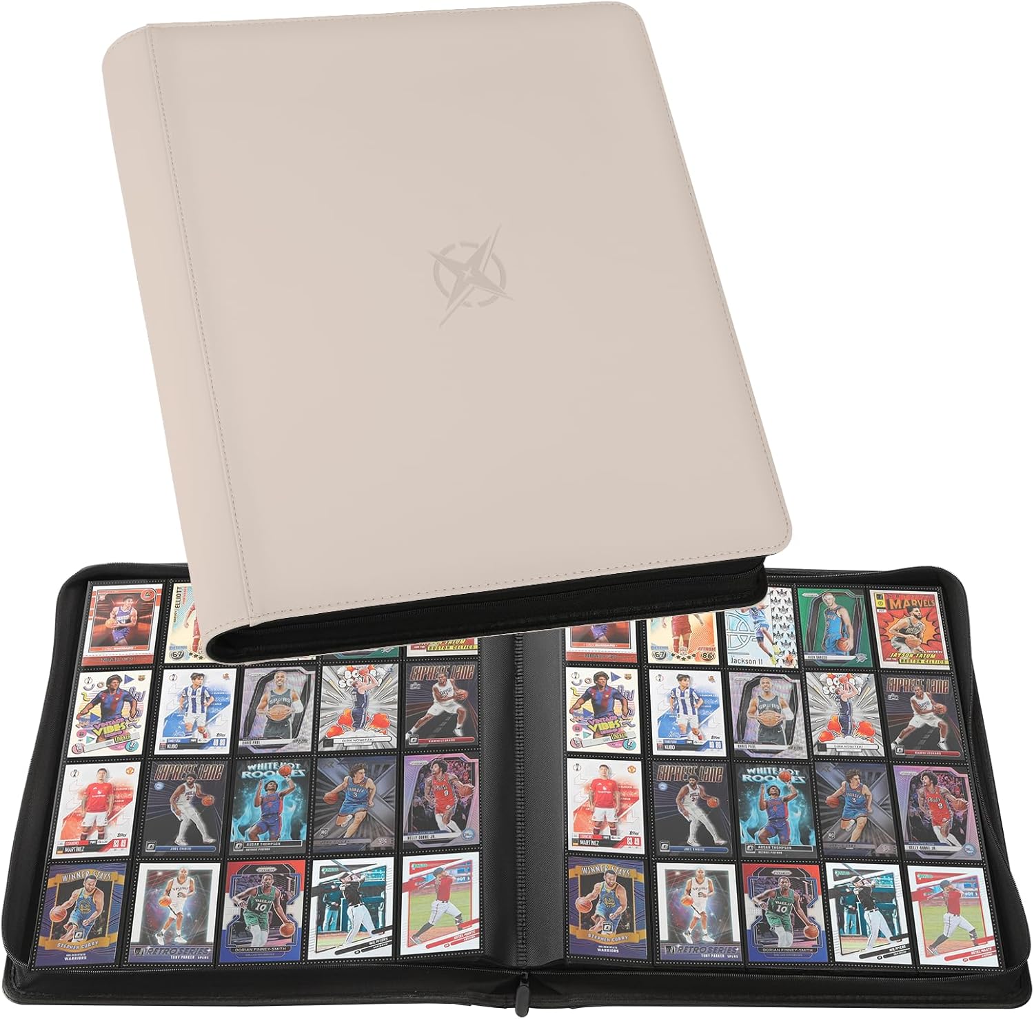 20-Pocket Card Binder, Trading Card Binder Holds 2000 Cards, Premium Zippered Trading Card Album Compatible with TCG, Game & Sports Cards (Ivory White)