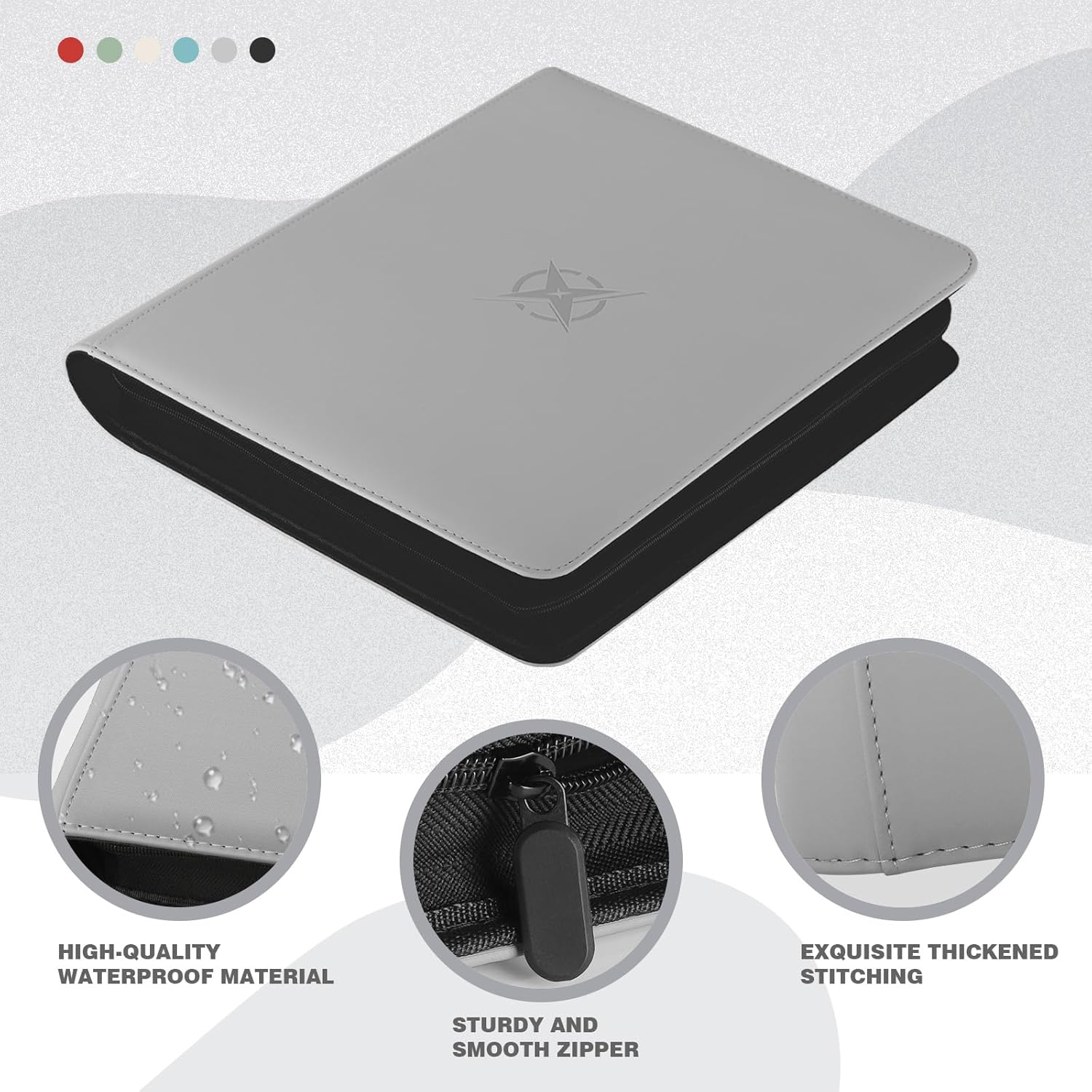 • 💎【Secure Zipper Closure:】Equipped with a smooth zipper, this card collection binder effectively guards against dust and moisture. Your valuable cards stay protected inside this reliable binder for cards.