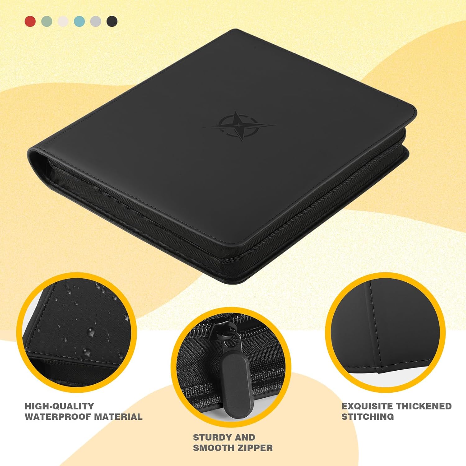 • 💎【Secure Zipper Closure:】Equipped with a smooth zipper, this card collection binder effectively guards against dust and moisture. Your valuable cards stay protected inside this reliable binder for cards.