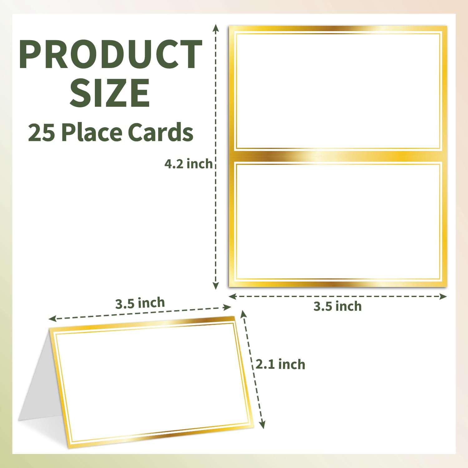 25 Premium Place Cards for Table Seating, Wedding Name Place Card with Gold Border, Tent Cards for Birthday Bridal Shower Baby Shower Reception Dinner Party Decorations -A19