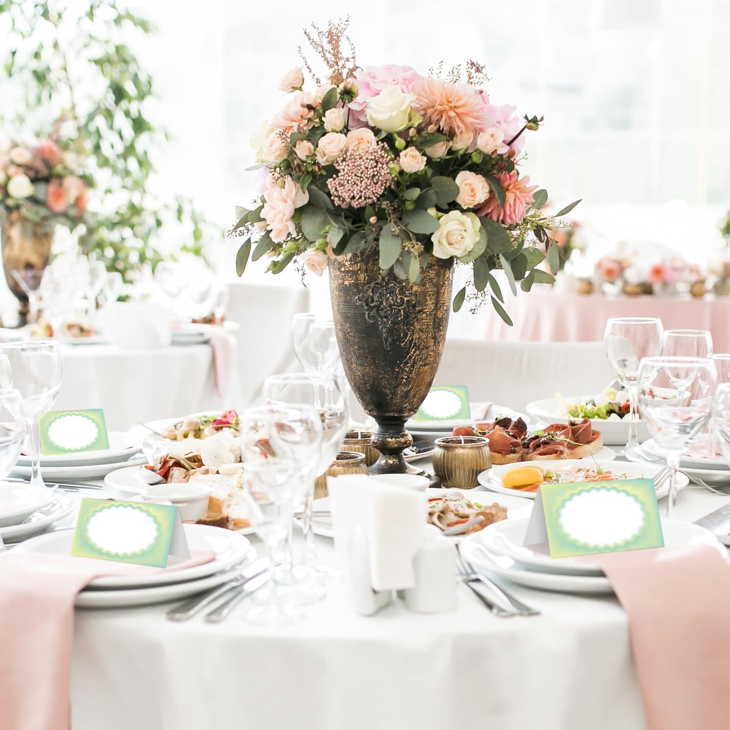 • 2)Design: Bright digital color print prevents ink smearing, beautiful and cute details will give joy and happiness of every guests and the hosts. Tent Style refer to it can be folded as a tent to stand alone or can be placed into a holder.