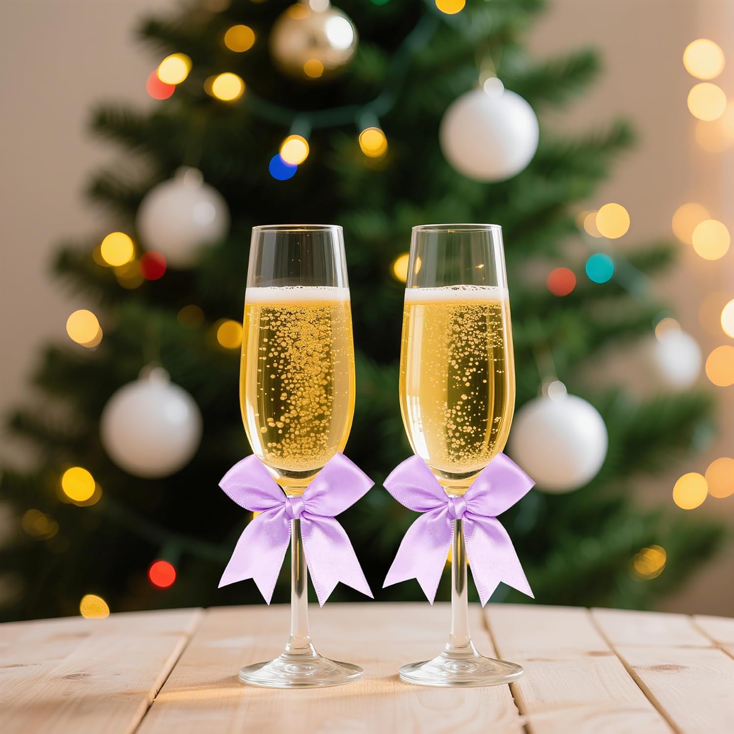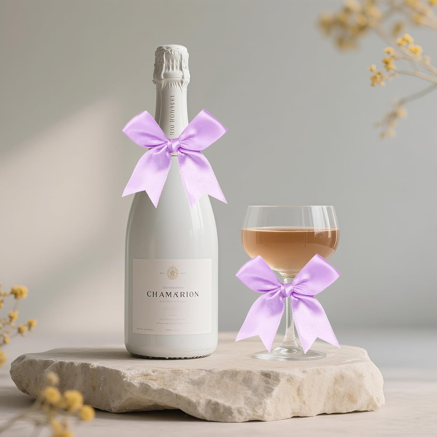 50 PCS Twist Tie Bows Satin Ribbon Bows 3.3 Inch Gift Wrap Bows Craft Bows for Gift Wrapping, Party Decorations Gifts Bag DIY Treat Bags Wedding Decor Baby Shower Christmas (Light Purple)