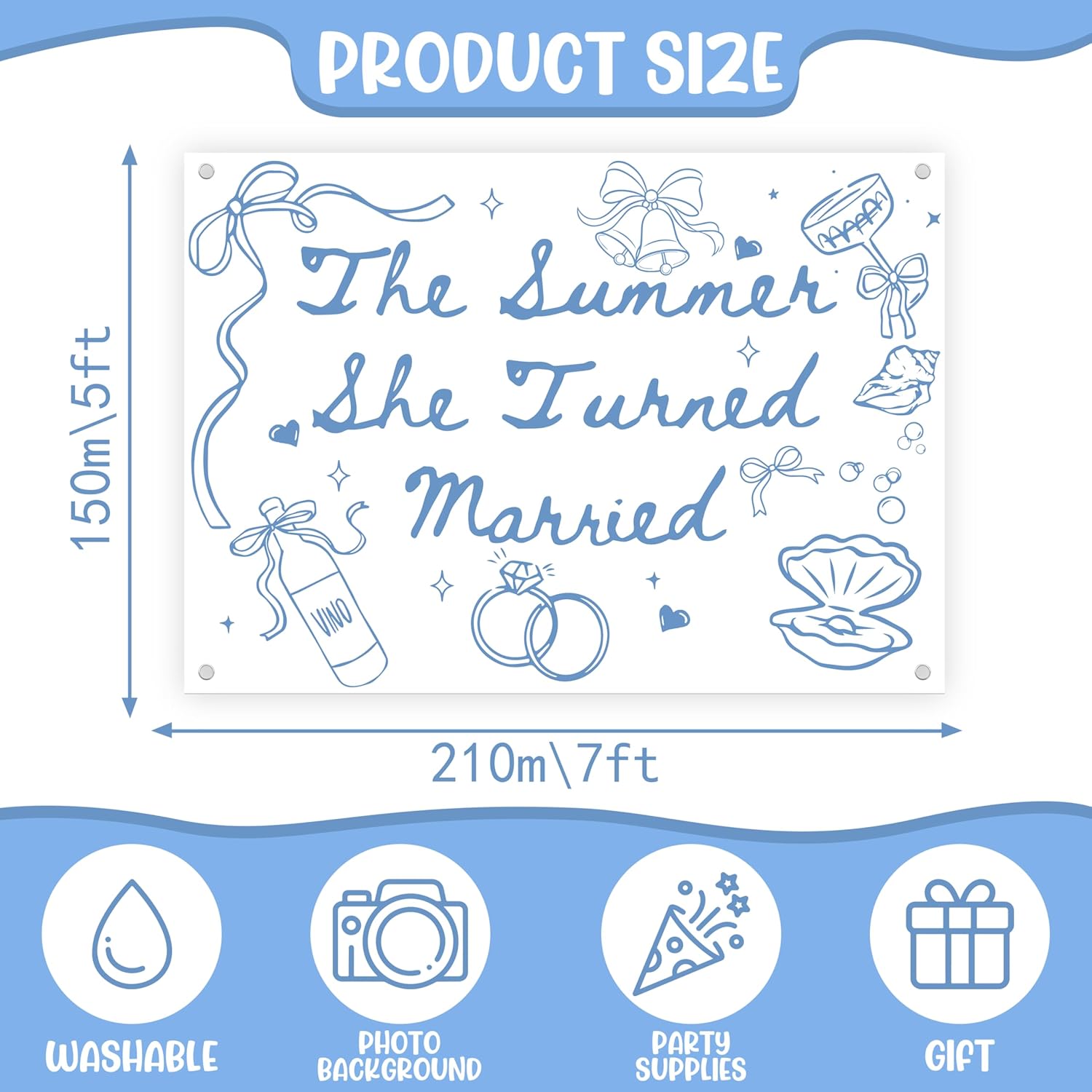 The Summer She Turned Married Backdrop - Beach Wedding Party Decorations - Bridal Shower Bachelorette Party Background Blue