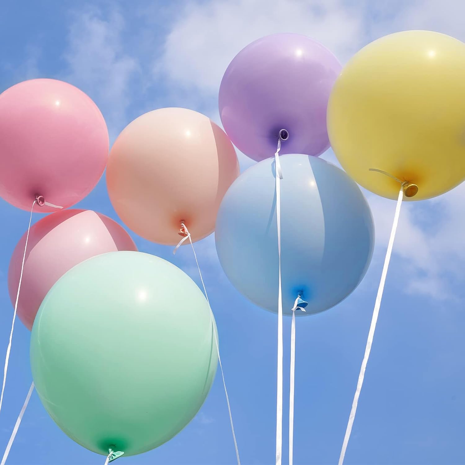• What You Will Get - Our pastel balloons kit includes 10 pcs macaron pink balloons, 10 pcs macaron blue balloons, 10 pcs macaron purple balloons,10 pcs macaron green balloons, 10 pcs macaron yellow balloons, 10 pcs macaron orange balloons, 1 pink ribbon and 1 white ribbon