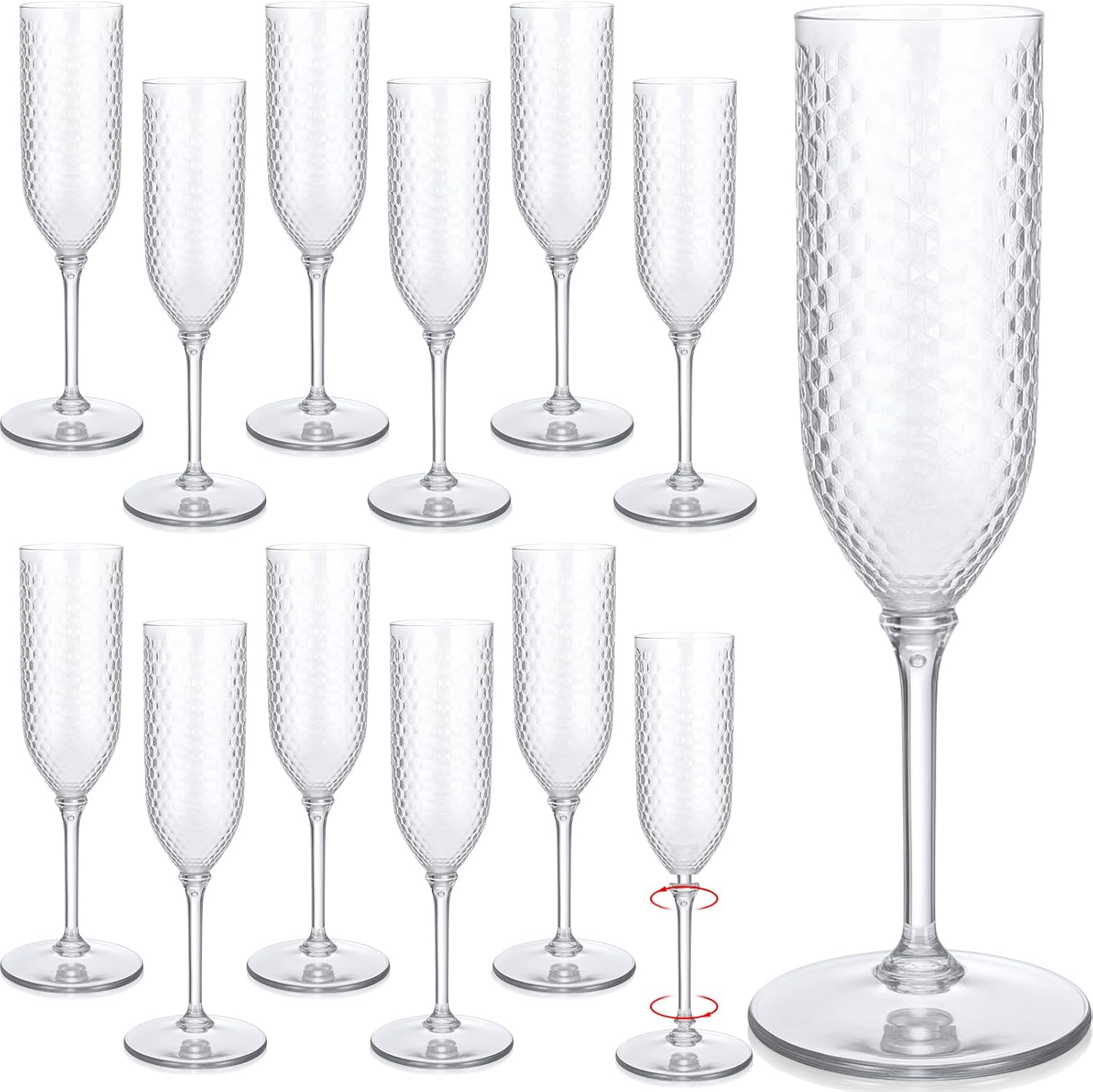 • 24 Pack for Elegant Entertaining: Serve your guests in retro style with this 24-pack of 5.5 oz plastic champagne flutes; Each champagne cup measures approximately 2.87 x 8.43 inches, offering just the right size for mimosas, bubbly, or sparkling water; Ideal for weddings, New Year's Eve, or birthday party, this set adds a stylish sparkle to any celebration