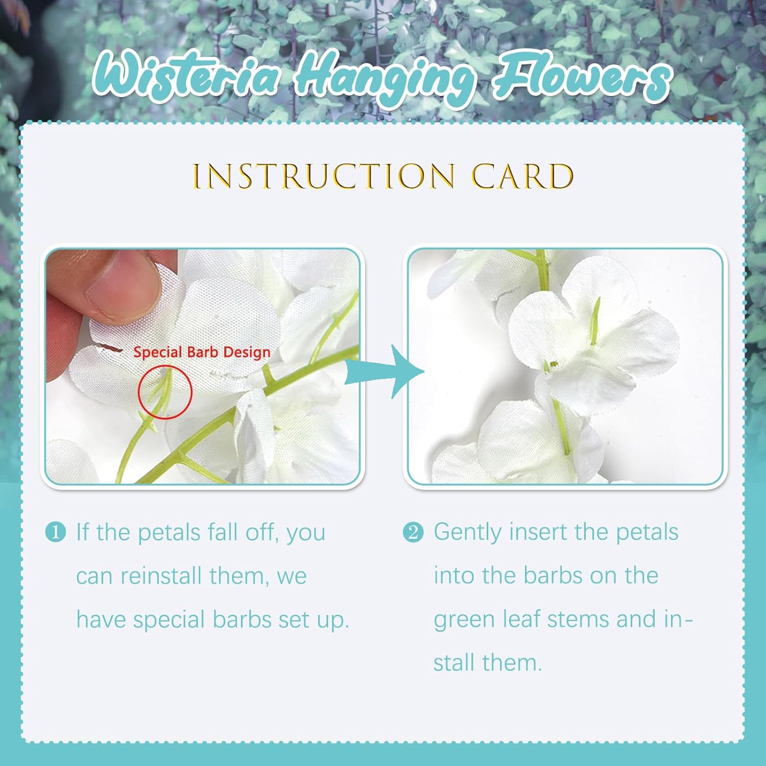 • 【Cycle Used】The lake blue artificial wisteria garland is made of silk, the stem is made of metal wire and plastic, and it can be easily bent and recovered, so you can use it many times, very environmentally and cost-effective.