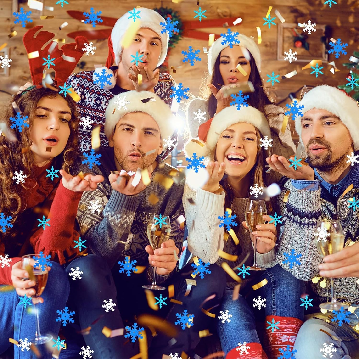 • Festival Winter Decor: Create a magical atmosphere with dazzling snowflake confetti, featuring shimmering winter confetti in elegant blue and gold. Winter confetti is ideal for scattering on tables, gifts, or party setups to add a sparkling touch