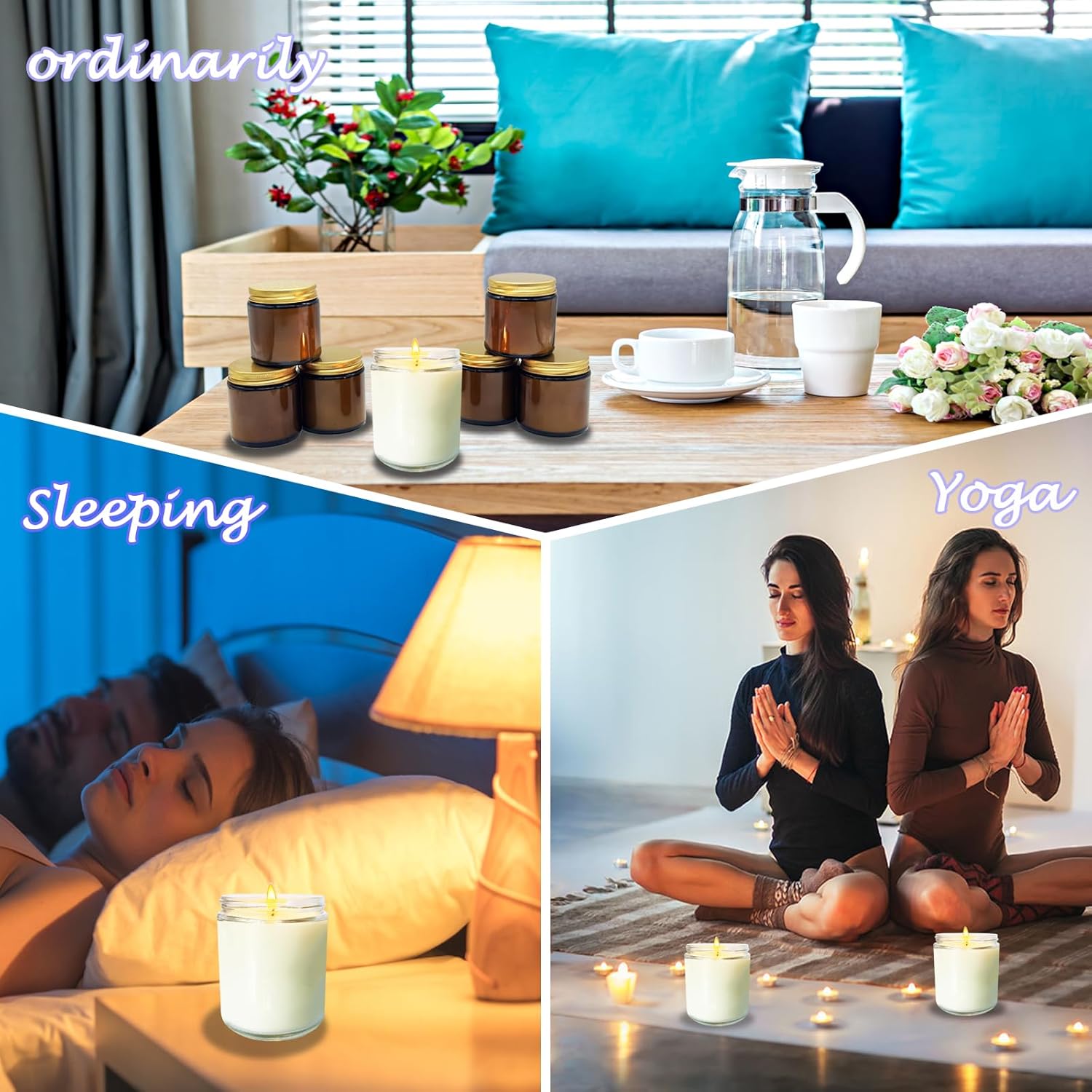 • 🪔🪔PRODUCT DESCRIPTION: Our 12 piece bulk mason jar candles with lids measure approximately 8 ounces each, plenty of quantity sets to meet any of your needs, and the sophisticated design makes for a great gift idea!