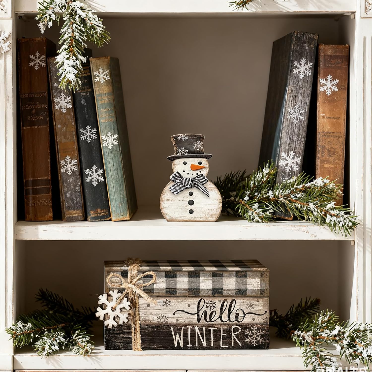 • EXQUISITE DECORATION: The set includes 4 snowman tiered tray decorations, 3 wooden mini books, a standing wooden decoration and a piece of twine, you can tie them together by yourself and tie them with a pretty bow, they make your desktop look warmer and more beautiful
