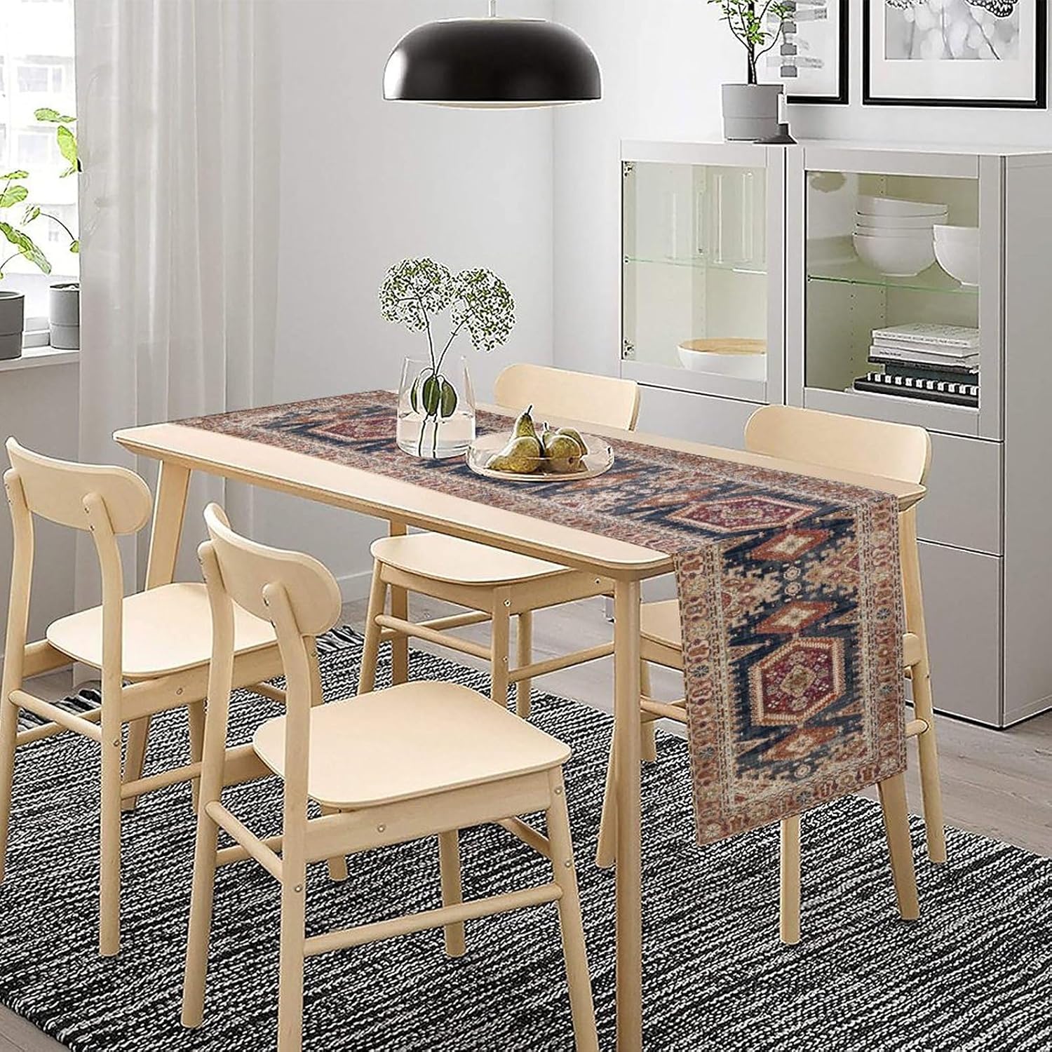 Vintage Boho Table Runner,Flower Geometric Design Rustic Farmhouse Table Runner for Home Farmhouse Kitchen Table Dining Coffee Room Garden Party Wedding Decor 13x36in