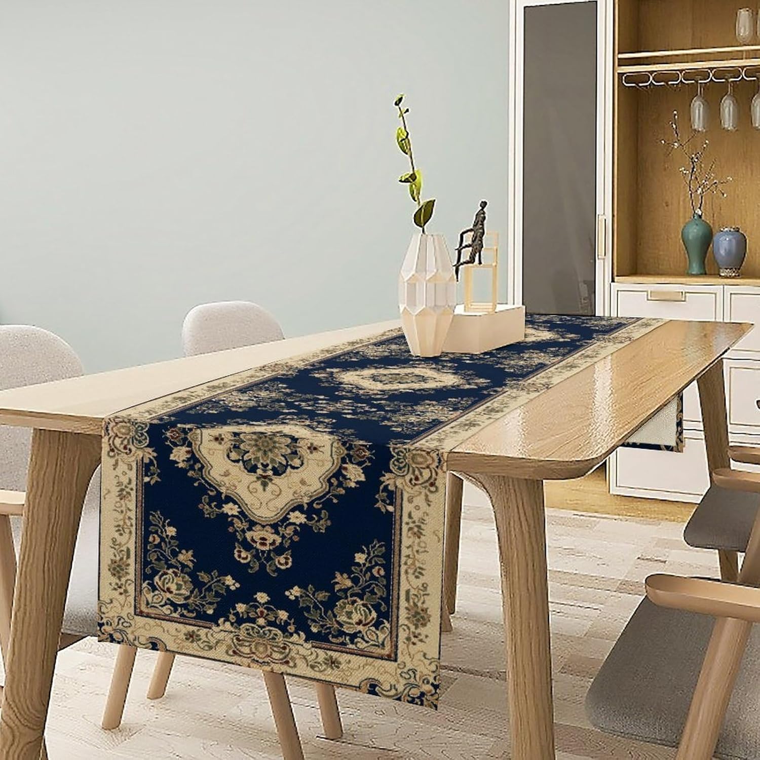 Vintage Elegant Farmhouse Table Runner Blue Beige Flower for Home Farmhouse Kitchen Table Dining Coffee Room Garden Party Wedding Decor 13x60in