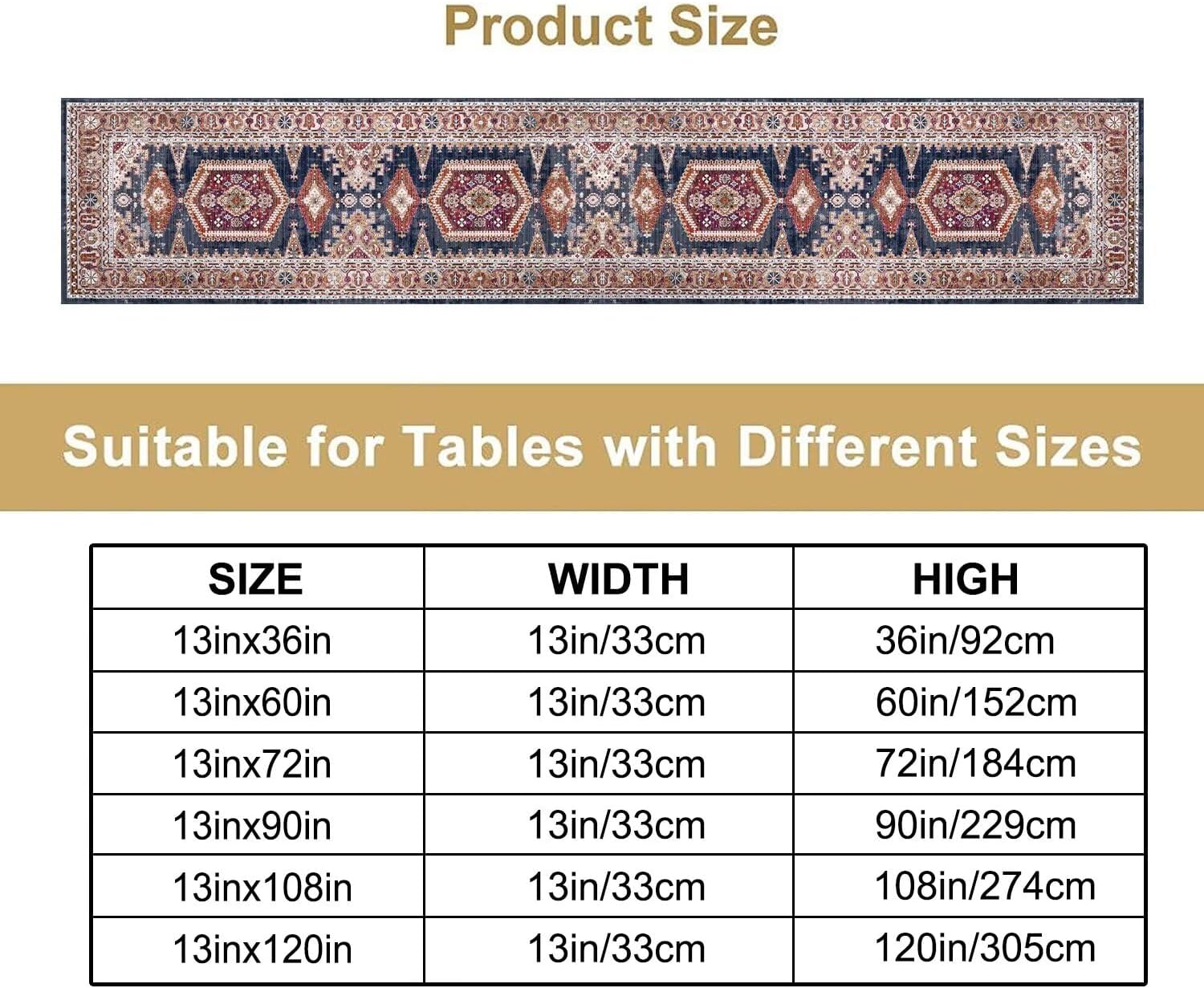 Vintage Boho Table Runner,Flower Geometric Design Rustic Farmhouse Table Runner for Home Farmhouse Kitchen Table Dining Coffee Room Garden Party Wedding Decor 13x108in
