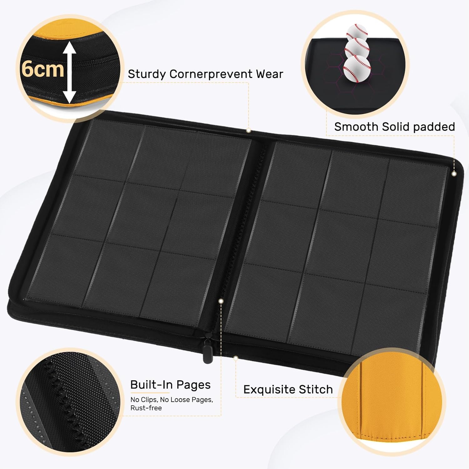 • Side Loading & Ultra-Clear Pages: Featuring archival-grade acid-free & non-PVC materials, this side-loading card binder prevents fading and card stickiness while its ultra-clear anti-scratch sleeves showcase holofoil details and securely lock cards in place—ideal for prolonged storage and collection display.