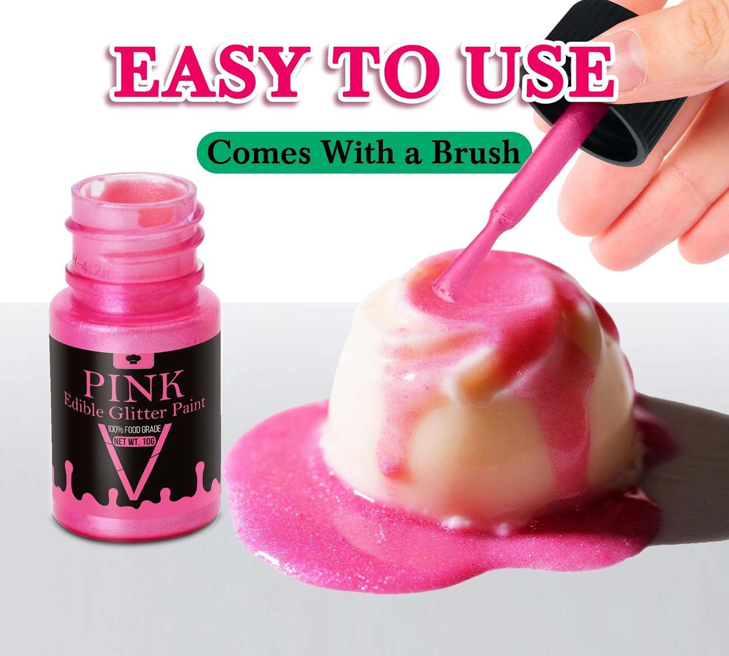 • Food-Safe and Allergen-Free Ingredients: Made from 100% food-grade materials, our edible glitter paint is gluten-free, dairy-free, and vegan. It’s safe for all ages, free from GMOs and allergens, ensuring your decorations remain tasty and healthy.
