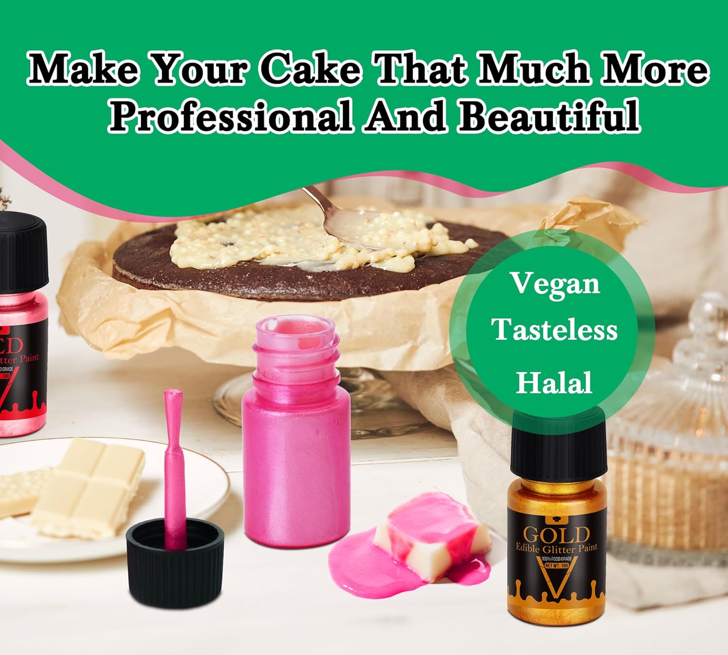 • Brilliant Metallic Effects with Edible Paint: Create stunning high luster finishes on cakes, chocolates, drink and desserts using our edible paint and liquid food coloring. This food safe edible paint delivers brilliant metallic shimmer without altering taste, perfect for professional bakers and DIY enthusiasts seeking a luxurious touch.