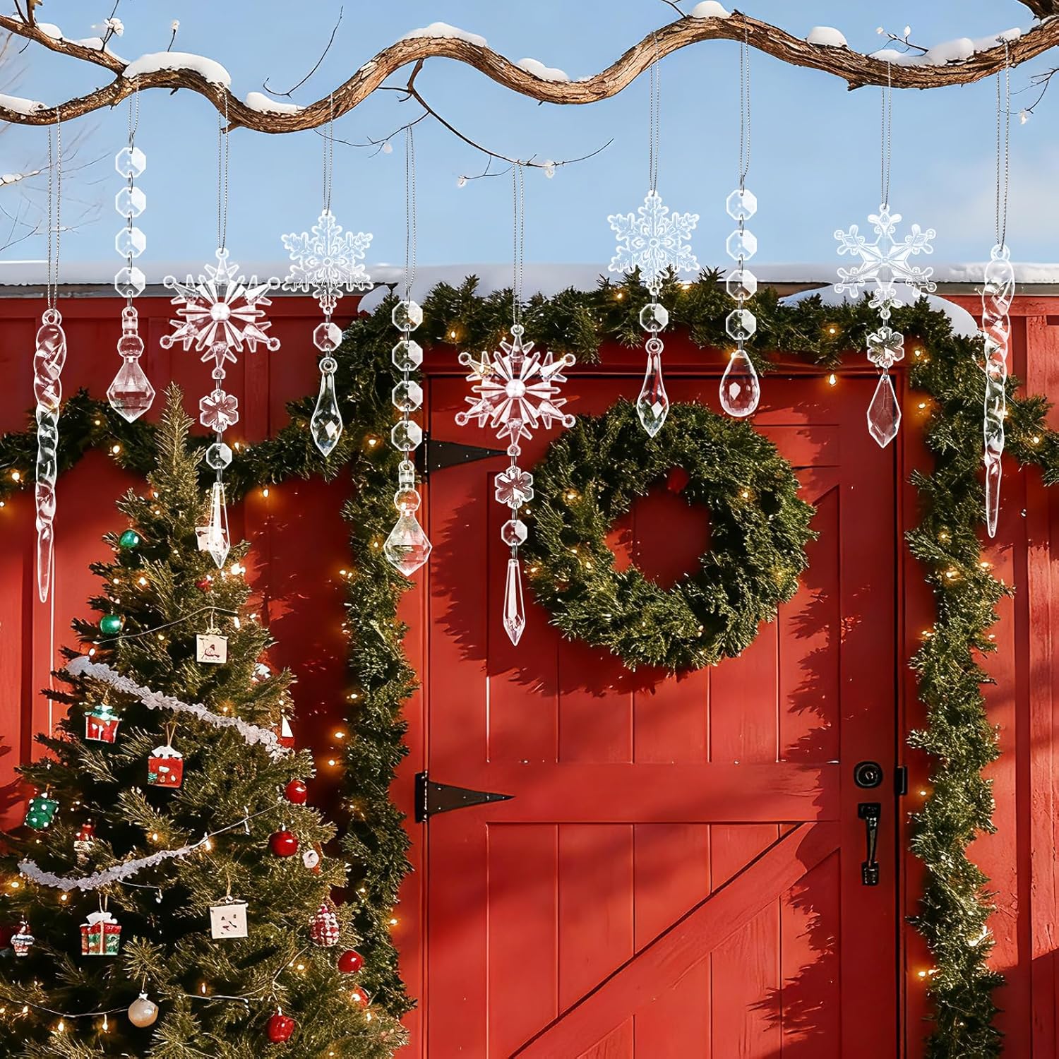 • Christmas Ornaments Set: Our 40pcs Christmas ornaments comes with 5 styles, 8 small icicles, 8large icicles, 8 small snowflakes, 8 large snowflakes and 8 water drop shaped hangings; Perfectfor adding a touch of elegance and sparkle for your Christmas tree decorations