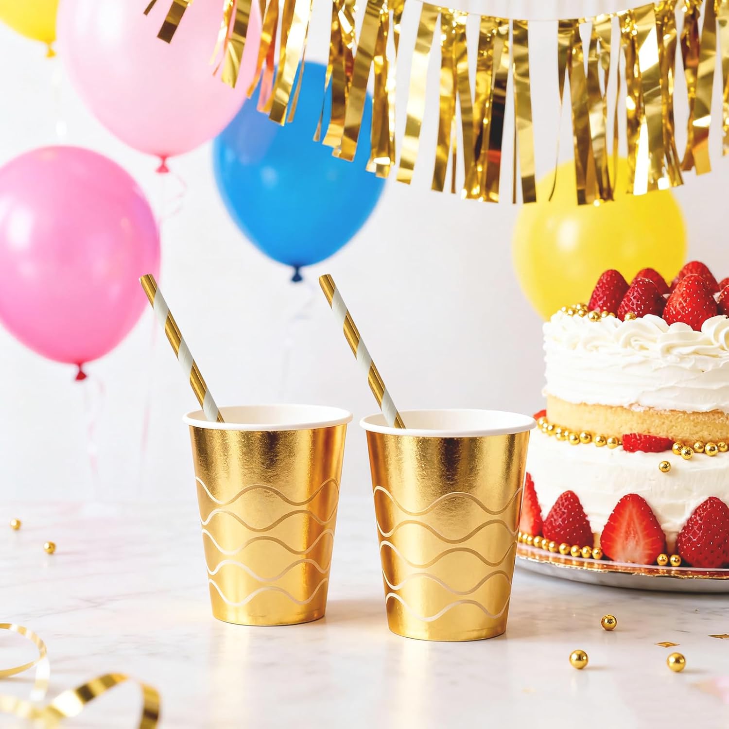 • Chic Gold & White Stripes Design:Metallic gold and white stripes create sophisticated elegance, perfect for weddings, cafes, bars and upscale events