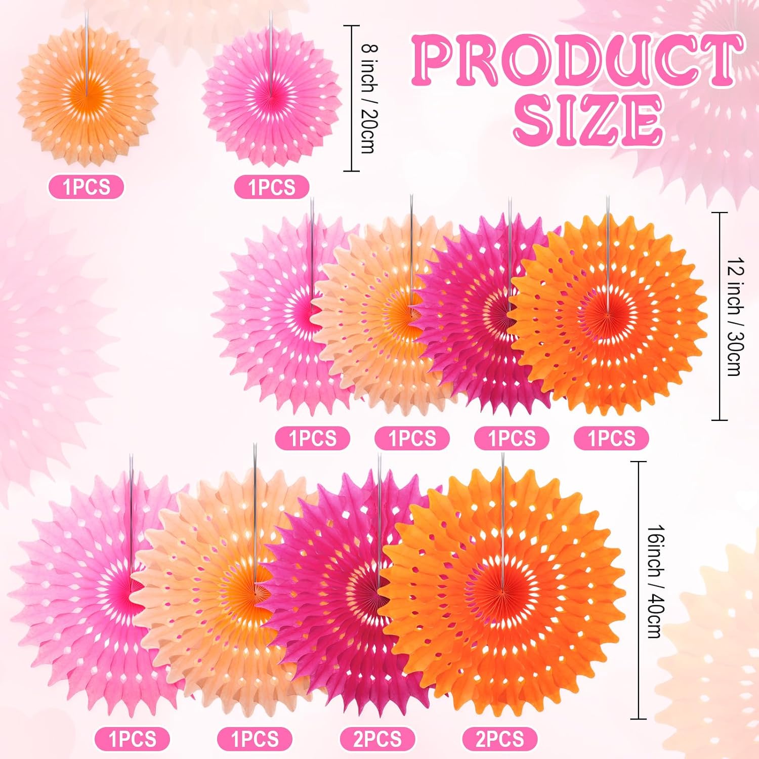 • Vibrant Decorations: you will receive 12 pcs hanging honeycomb paper fans in pink and orange; These stylish decorations will enliven any space and create a fun and festive atmosphere instantly