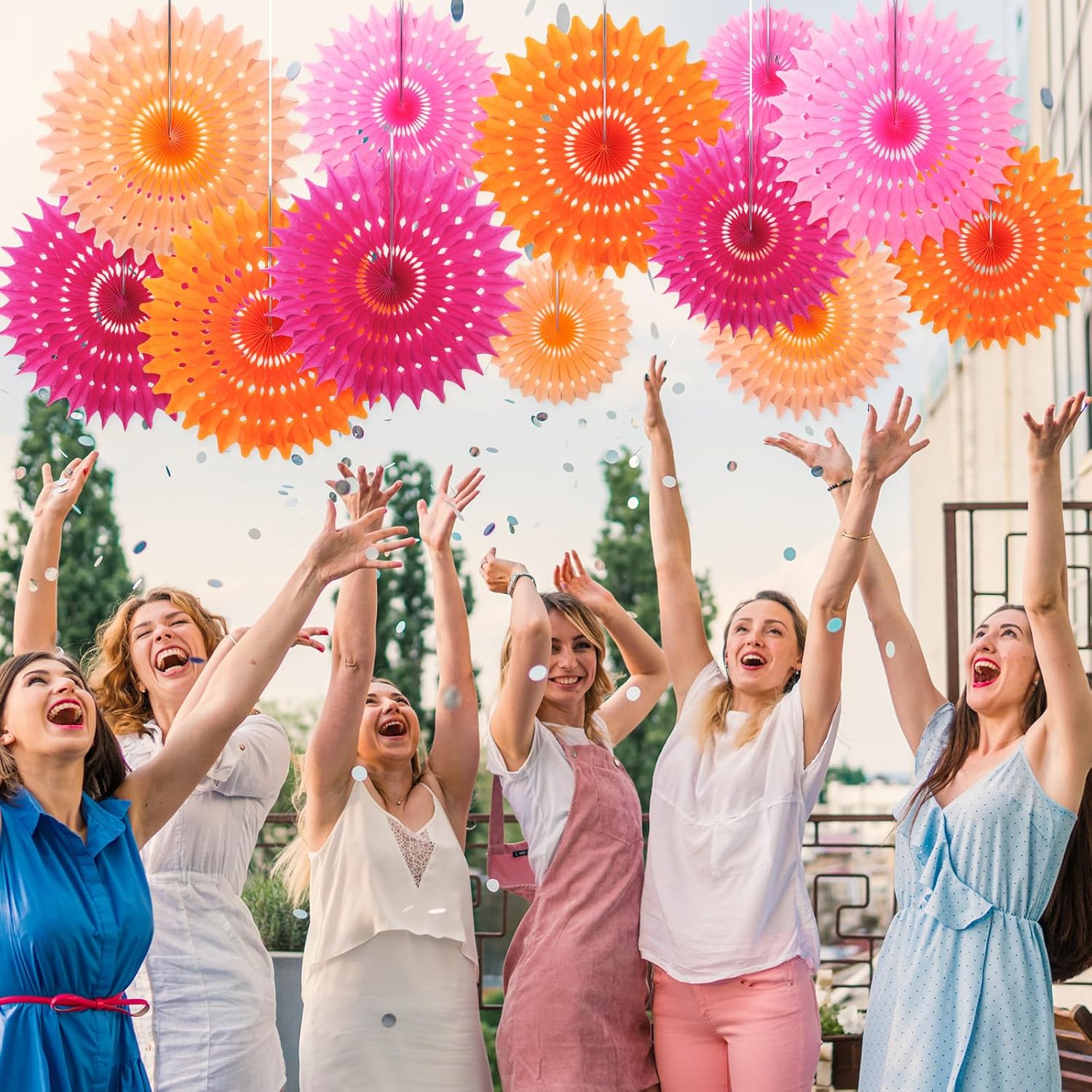 • Quality Material: the fiesta pink and orange paper fans are made of thickened paper, designed with a three-dimensional flower shape to create a sense of space; Vibrant colors and lightweight paper flowers can hang anywhere on the party decorations