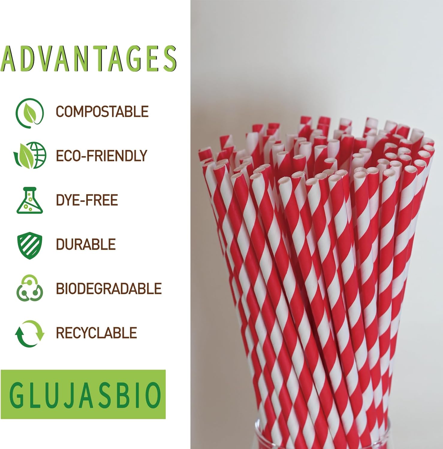 Disposable Red White Paper Straws - Striped Drinking Straws Bulk, for Party, Wedding, Cake Pops, Crafts, 7.75" x0.24"
