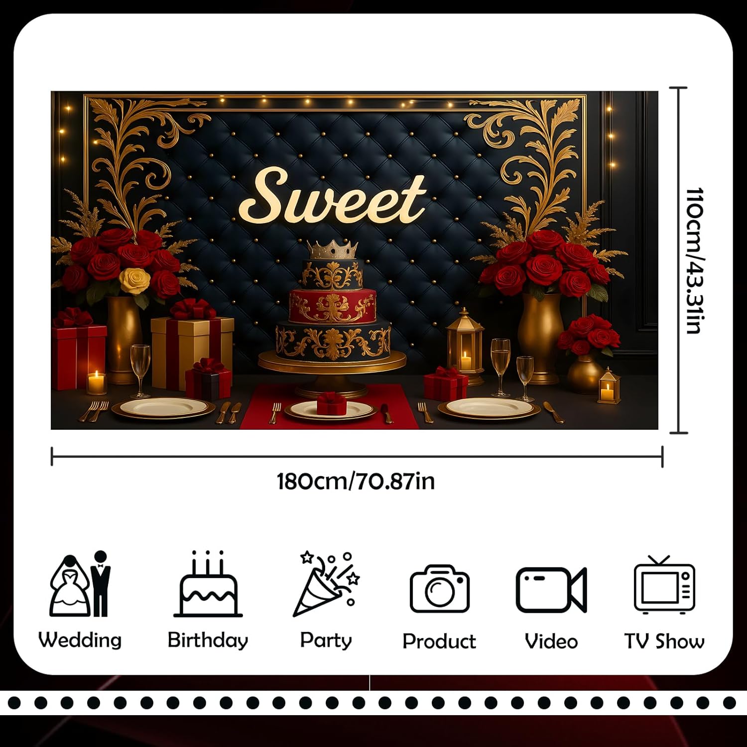 • Background: 1 Pcs 70 x 42 in , durable polyester fabric, easy to clean and store, lightweight and easy to carry; The professional production process makes this BlackGold theme banner reusable and colors vivid, not easy to fade Note: There may be slight creases during transportation. Before use, smooth the back by hanging or steam ironing.