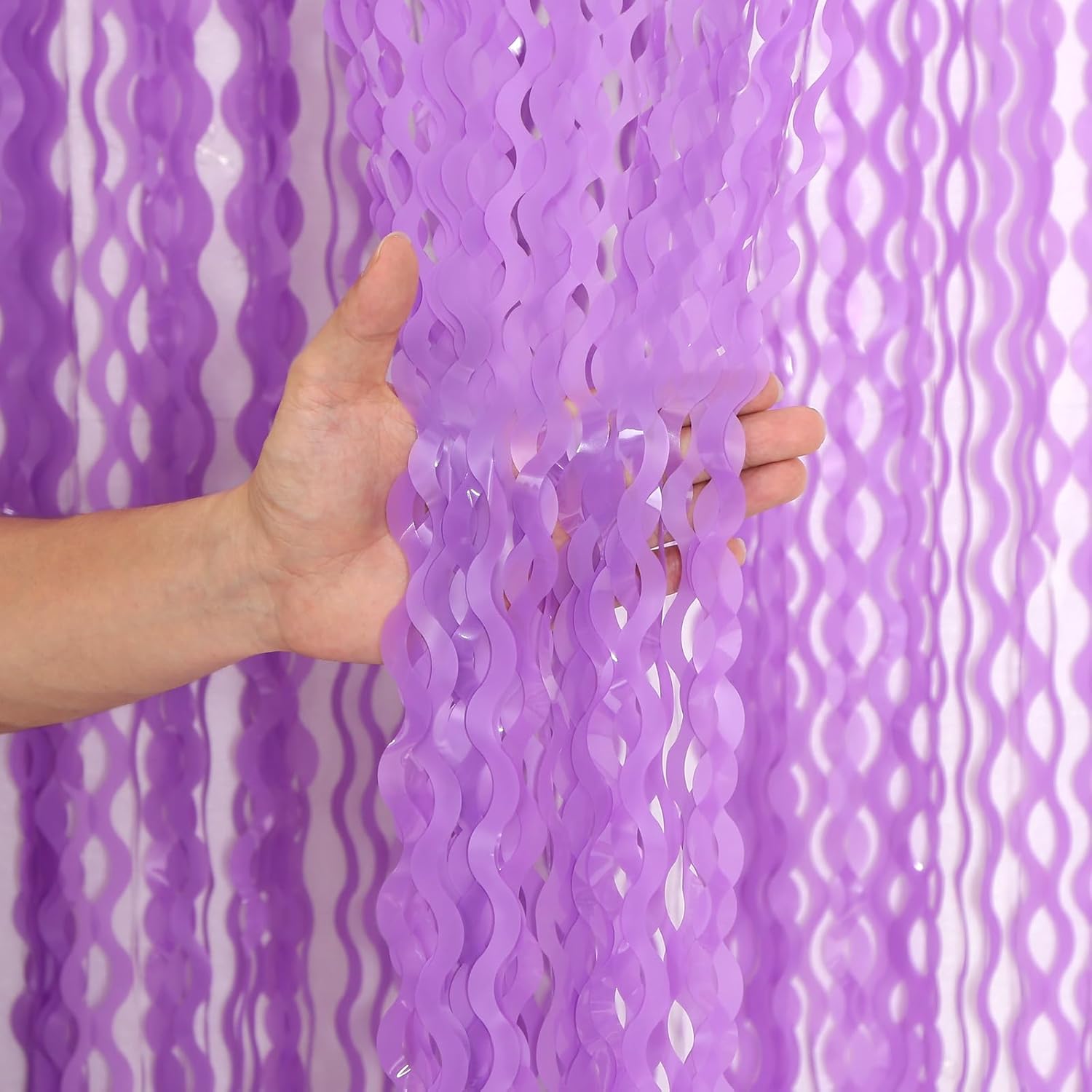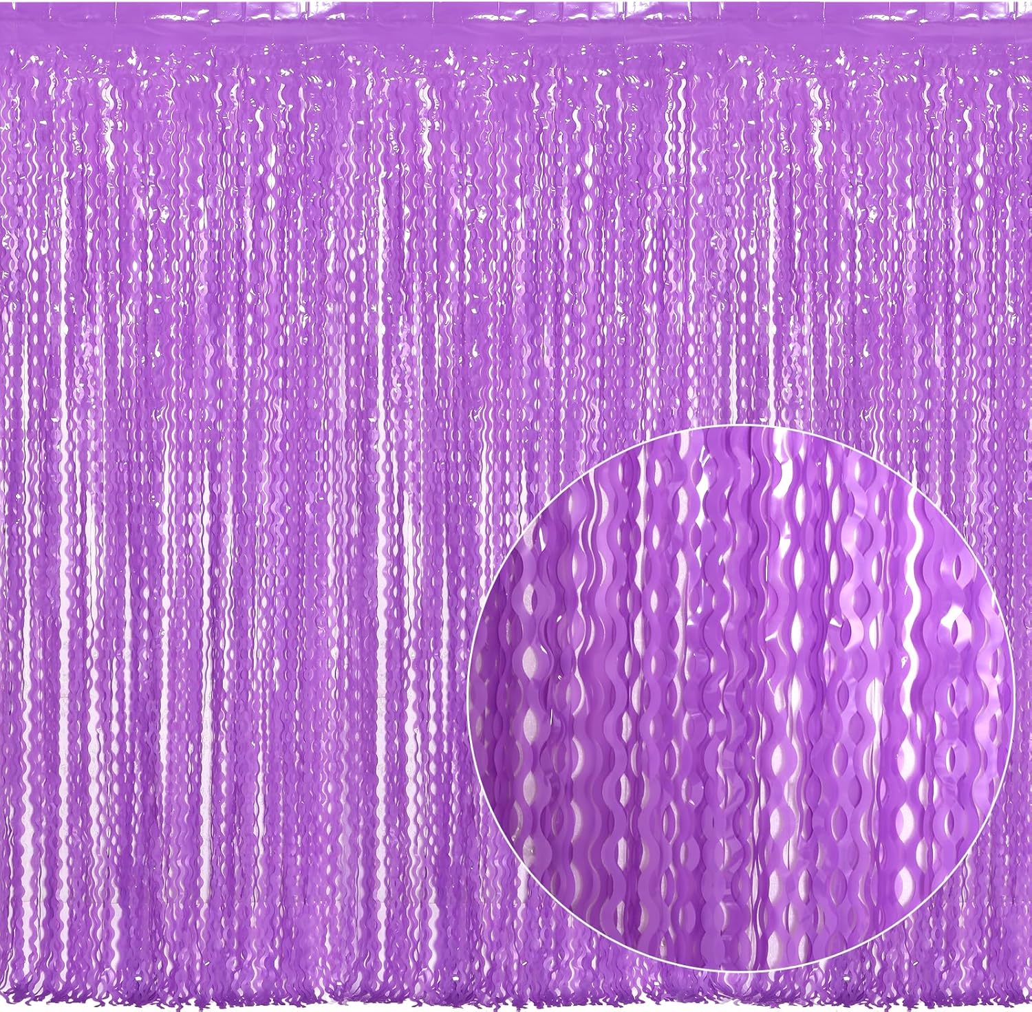 • 【LATEST Shiny Surface +Wavy Shape Tinsel Backdrop】The purple streamer backdrop is made of aluminium foil with shiny surface +wavy shape, good for adding sparkle as decorations for parties