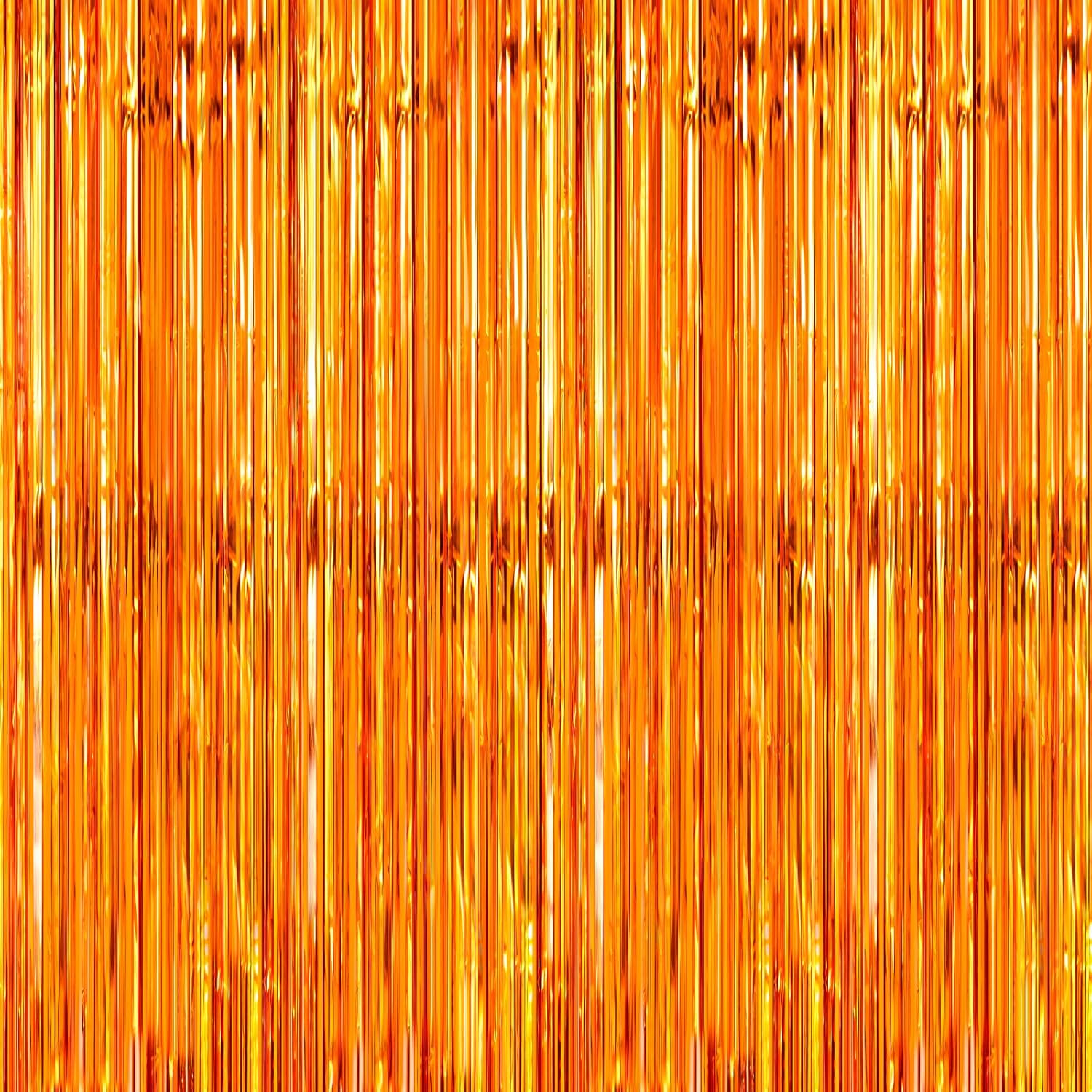 Crosize 3 Pack 3.3 x 9.9 ft Orange Foil Fringe Glitter Curtains Party Decorations, Tinsel Backdrop for Parties, Door Streamers for Birthday, Photo Booth Backdrops, Party Decor