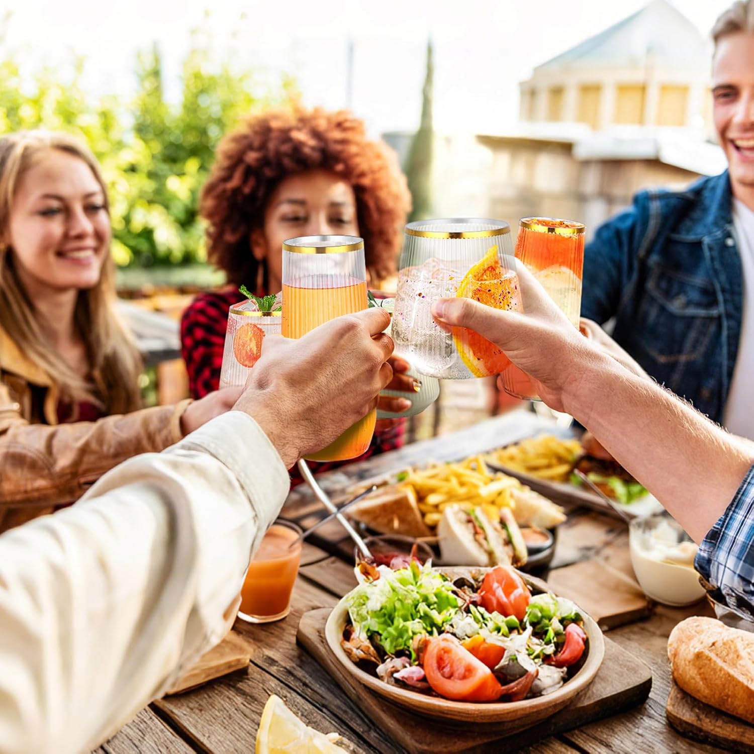 • 【Versatile Usage】These plastic stemless wine glasses bulk are perfect for a wide range of beverages, including champagne, wine, juice, whiskey, drinks, cocktails, water, various mixed drinks and more. Ideal for indoor and outdoor functions, home, office, bars, weddings, catering, barbecues, birthday parties