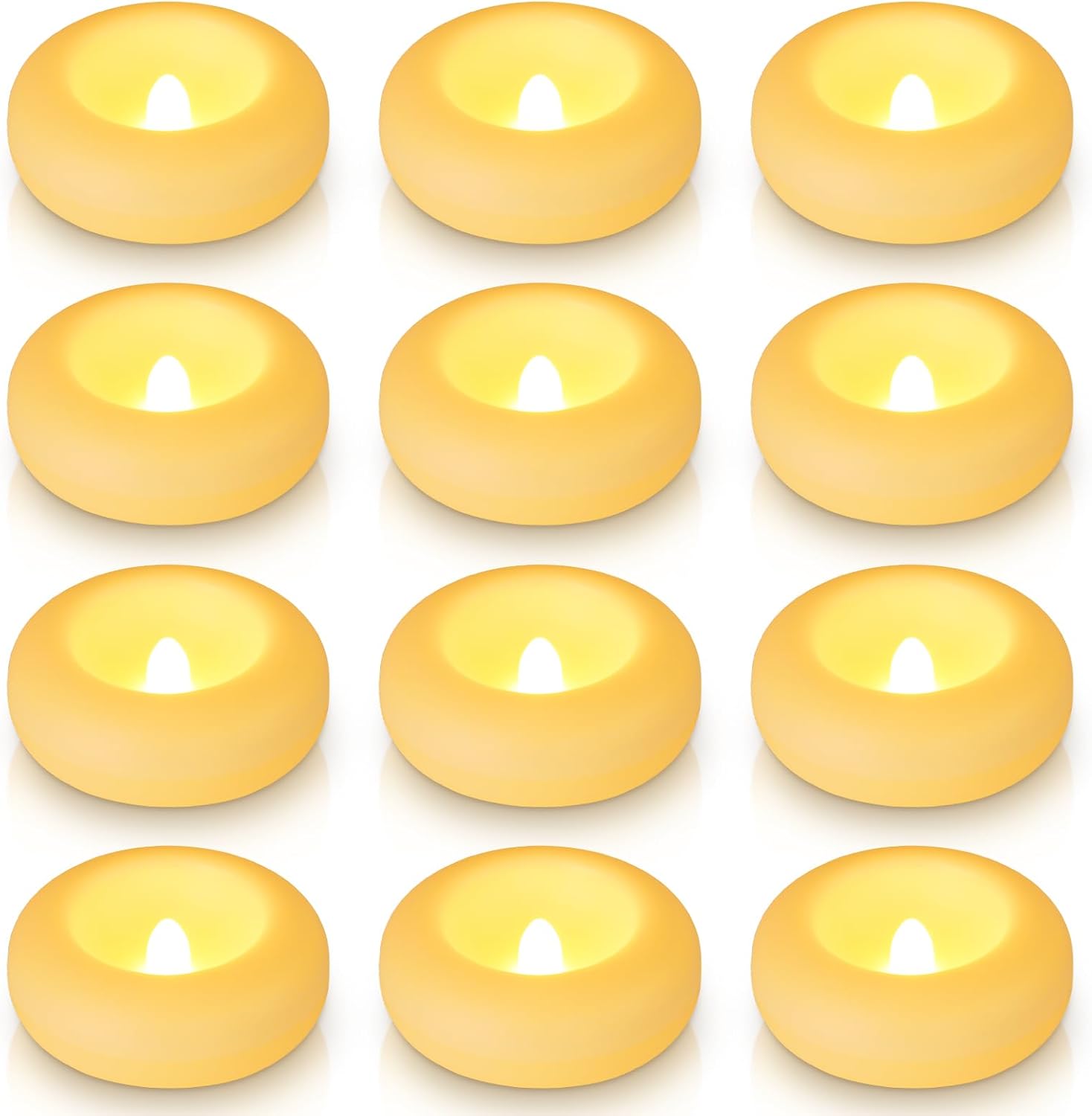 Aignis 12pcs Flameless LED Floating Candles Battery Operated, 120+ Hours Glow Time, 3 Inch Ivory Plastic Tealights, Cozy Warm Yellow Light for Romantic Pool/Bathtub/Hot Bath/Wedding Centerpiece Decor