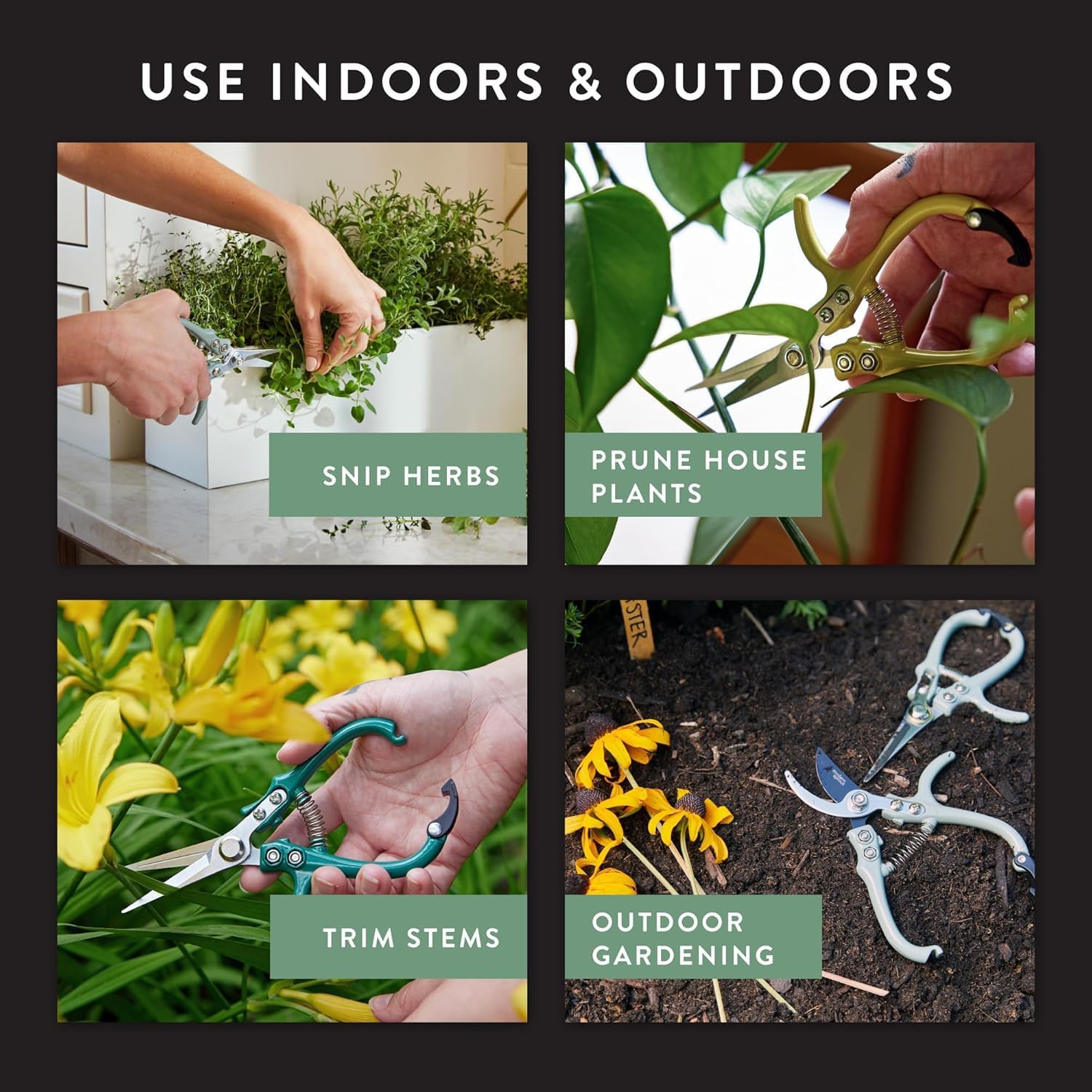 • Precision Plant Care for Professionals and Enthusiasts: These gardening shears are perfect for trimming herbs & flowers; Their compact, fine-tipped, rust-resistant high-carbon steel blades offer precise cutting in tight spaces, making them ideal for daily use in gardens, pots, and on delicate stems; Available in a convenient 4-pack - ideal for florists, landscapers, and nurseries who require multiple shears for continuous, high-volume trimming