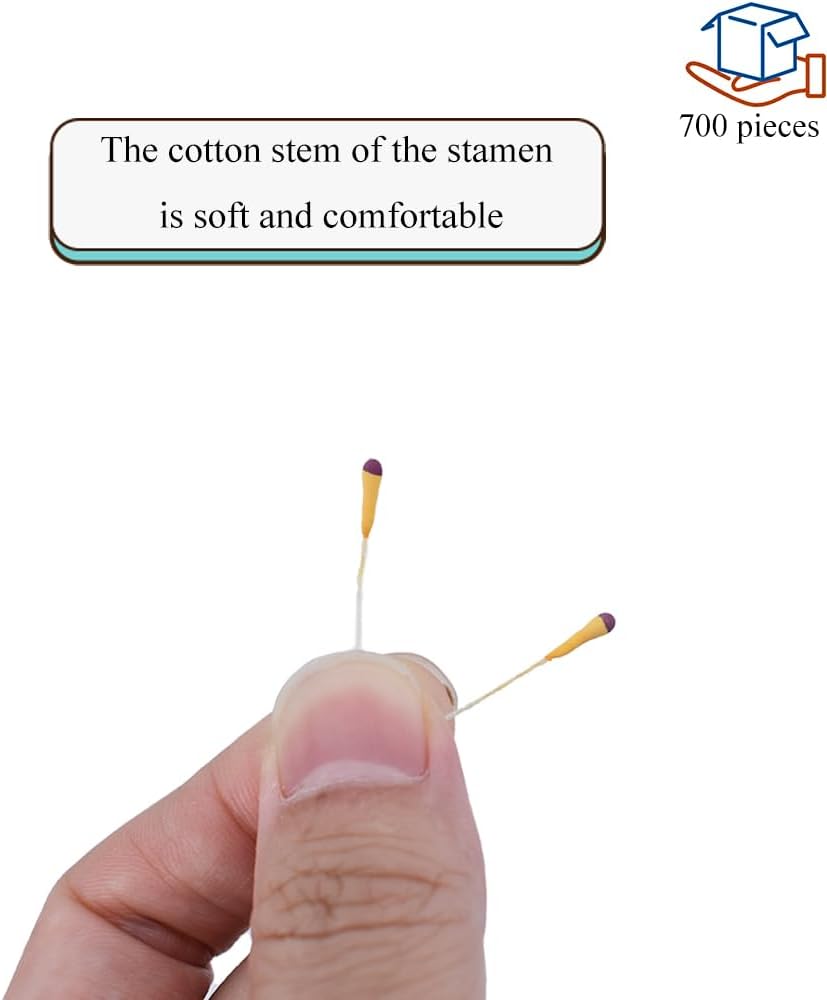 • Packing: 700 pieces per package. You will receive 700 carefully packed artificial flower stamens, which are realistic, finely crafted, and safe for use in various crafting projects. Use our Flower Pollen Stamens and add them to your cart to make your own handmade flowers or add them to pre-made bouquets for a professional touch!