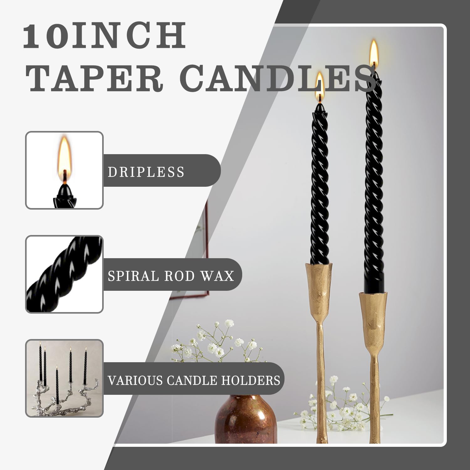 • Elegant Spiral Design & Black Aesthetic Features 12 black taper candles with a unique spiral shape, adding a touch of sophistication to any setting—ideal for dinners, weddings, or gothic-themed decor.