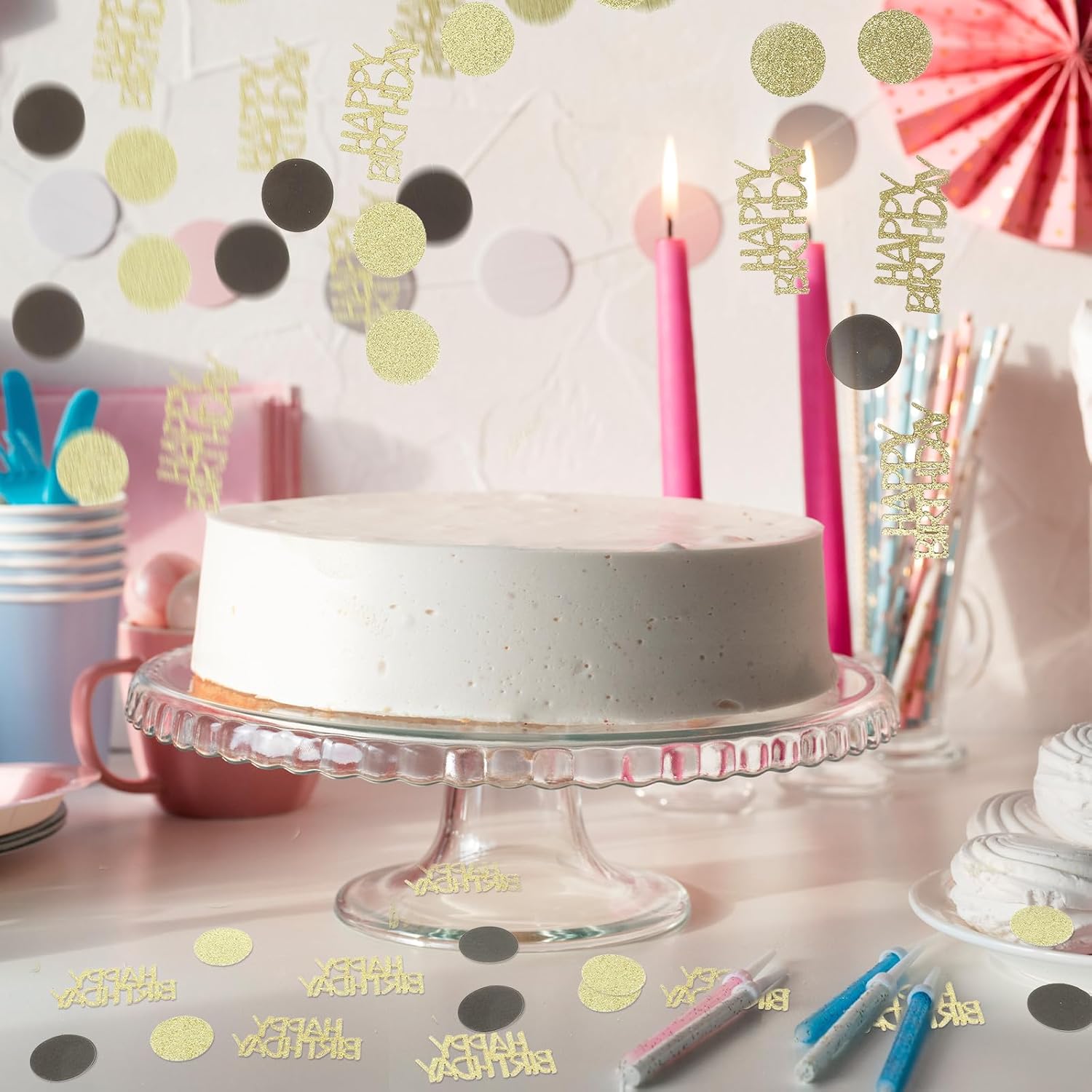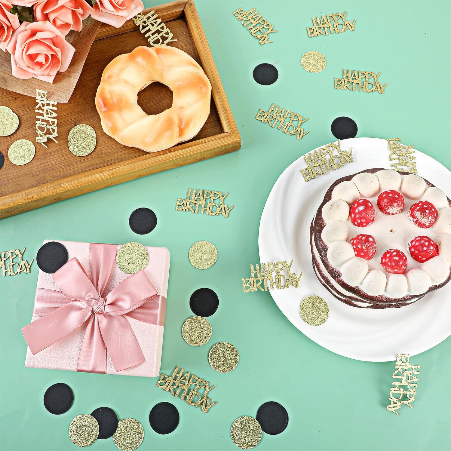 200Pcs Happy Birthday Confetti, Gold Black Birthday Confetti for Table, Metallic Foil Balloon Confettis Scatter Decoration for Party DIY Art Craft