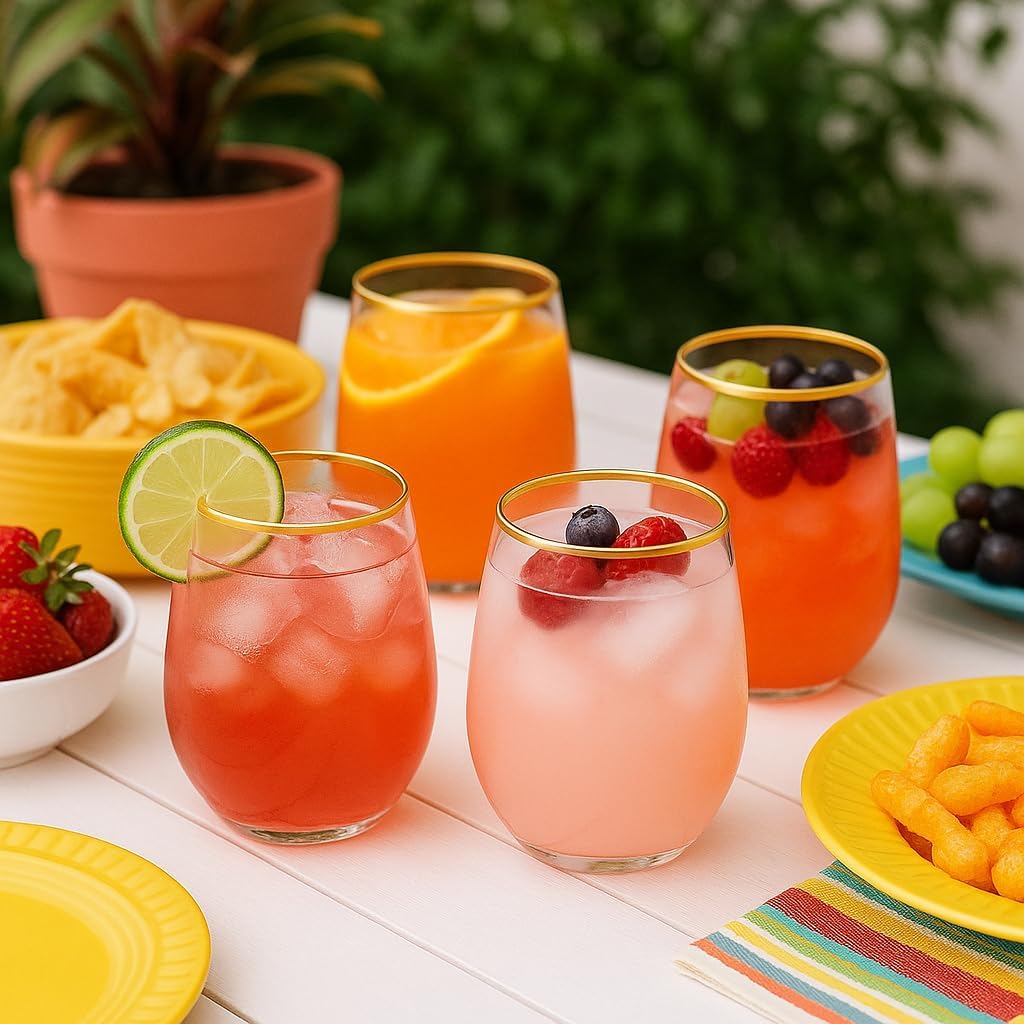 • Sleek & Safe Design for Guests: Made of thick BPA-free plastic with a wide base and smooth rim, these glasses are stylish yet safe—great for both adults and kids at your next gathering.