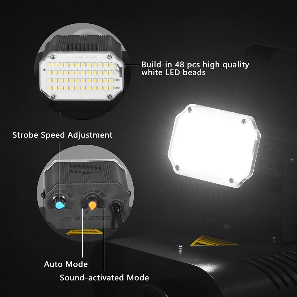 • 【Professional Strobe Light】This 12W strobe light comes with 48 high - quality white LED bulbs built - in, creating a dazzling strobe effect. It features two modes: auto and sound - activated. Additionally, you can set the strobe speed on your own