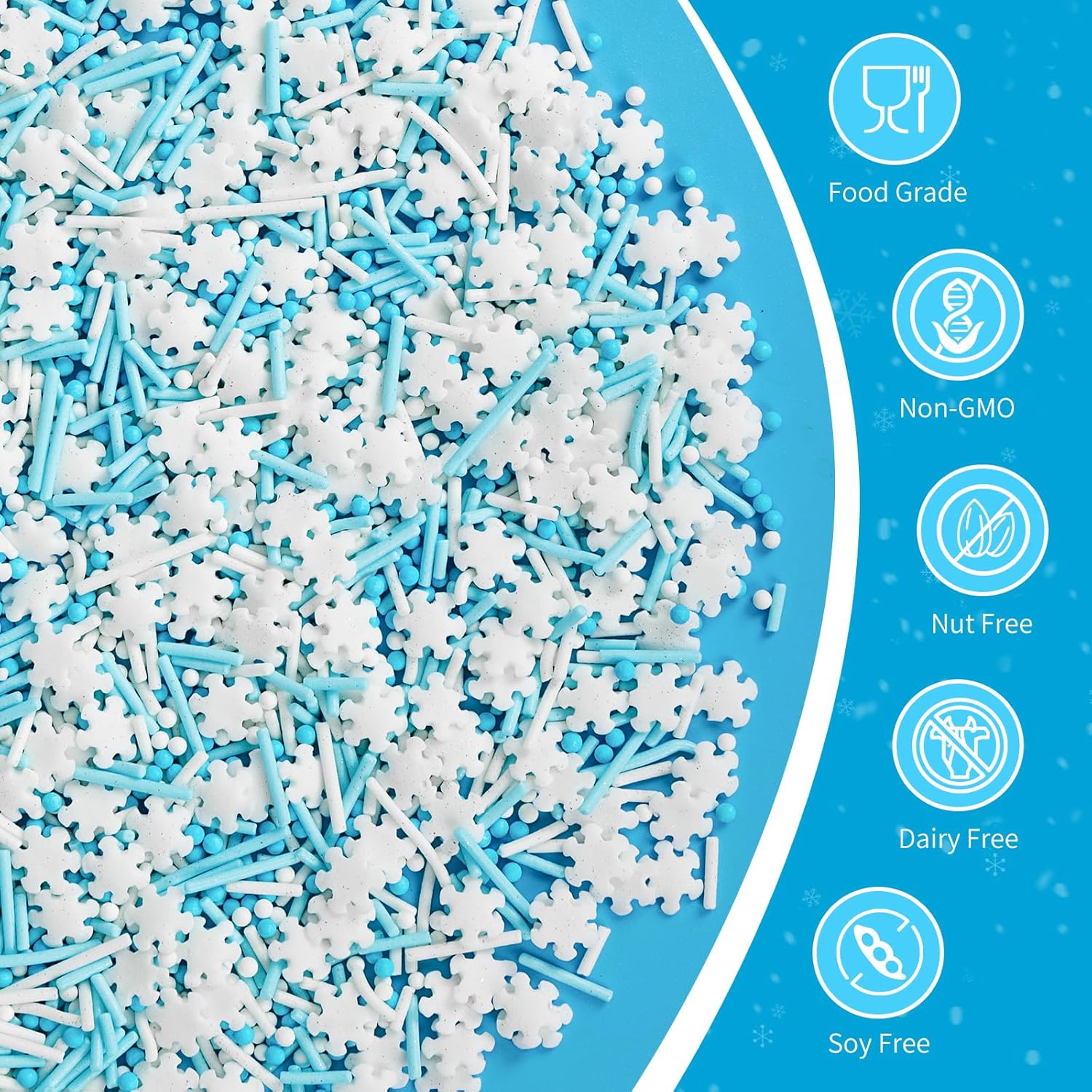 • Romantic Snowflakes Sprinkles with food-grade raw materials: Preservative Free, Nut Free, Dairy Free, Chemical Free, Soy Free, Non-GMO. Produced using food-safe standards, the process does not come into contact with allergenic substances and uses Tamper-proof food label