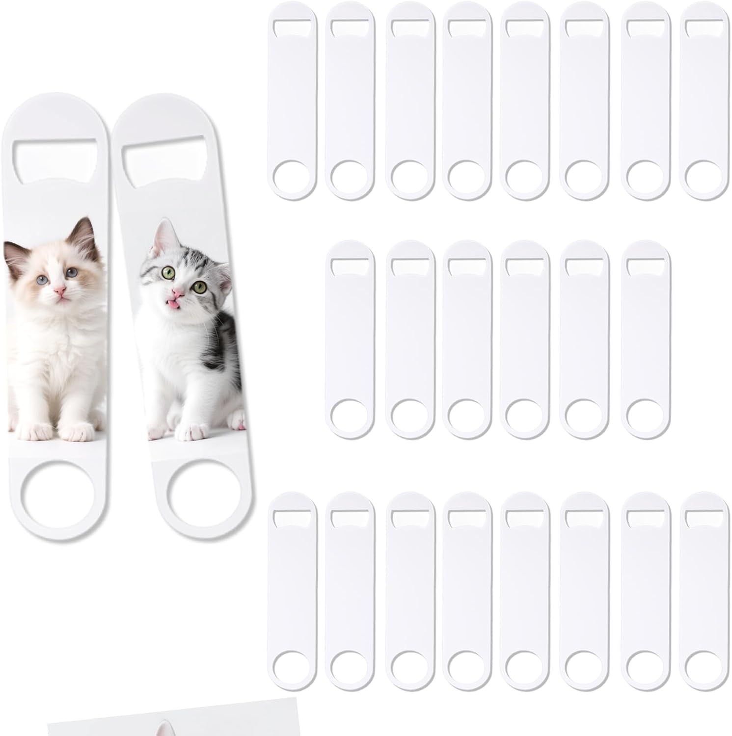 • Blank Sublimation Bottle Opener: This package comes with 25 pcs sublimation bottle opener blanks, all packaged in plastic bags, providing enough quantity for printing your favorite pictures on sublimation bottle opener blanks