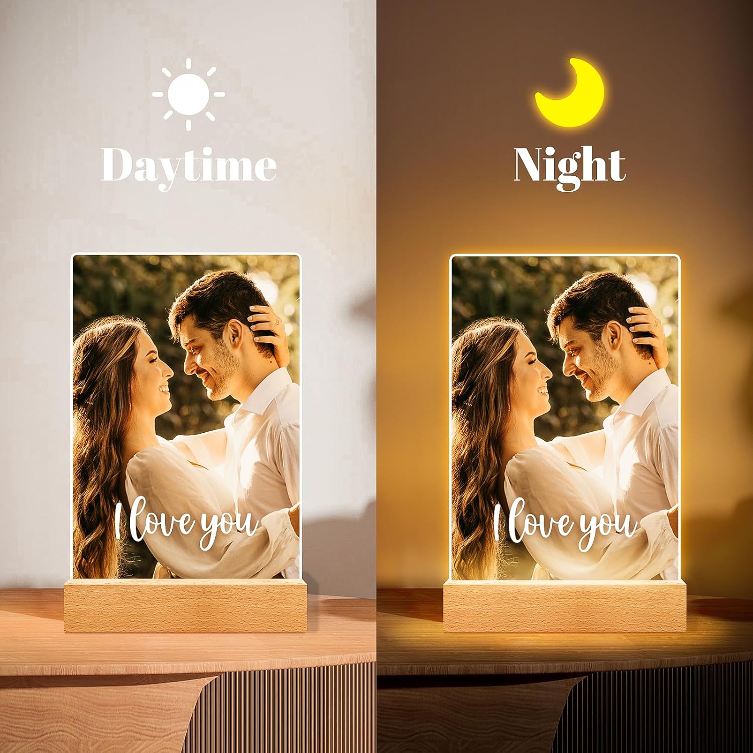 • PREMIUM QUALITY MATERIAL: Made of transparent acrylic material, acrylic glass is less prone to breakage and scratches than traditional glass, which ensures that your personalized photo will remain intact for a long time. Give your family, girlfriend or boyfriend a customized gift that will stand the test of time