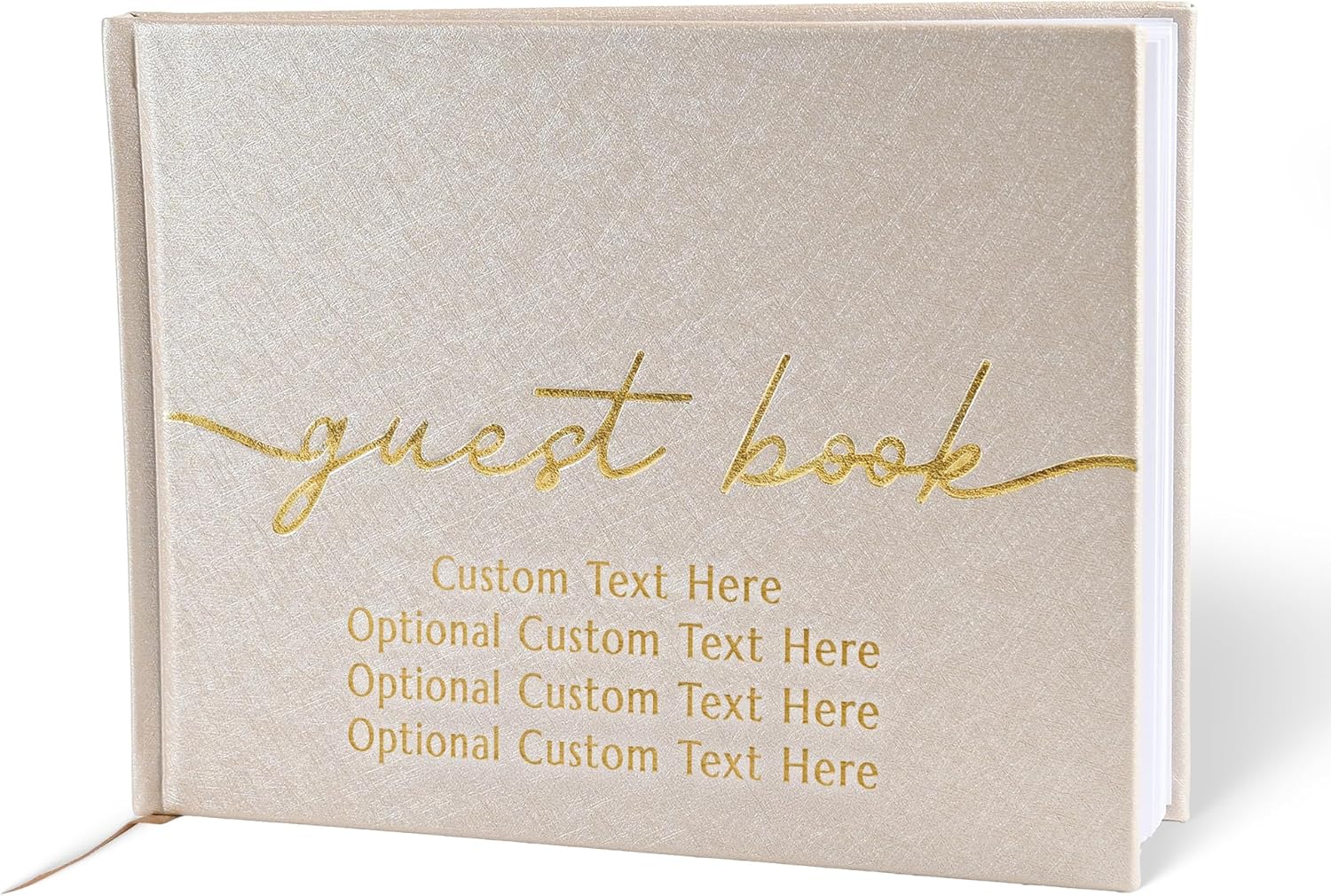 Promot Personalized Guestbook for Party (Champaigne Beige) - 110 Lined Pages in Wood-Free Vegan Leather Hard Cover - Wedding Guest Book Sign in and Photos, Baby Shower, Birthday or Graduation