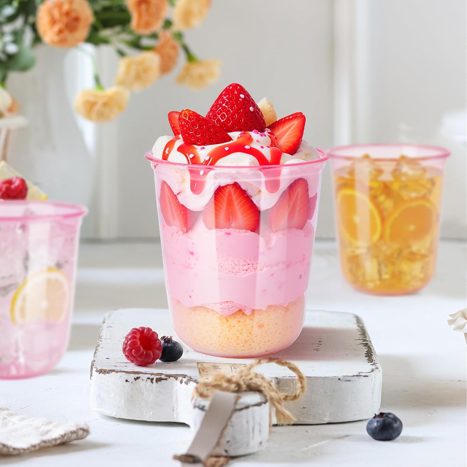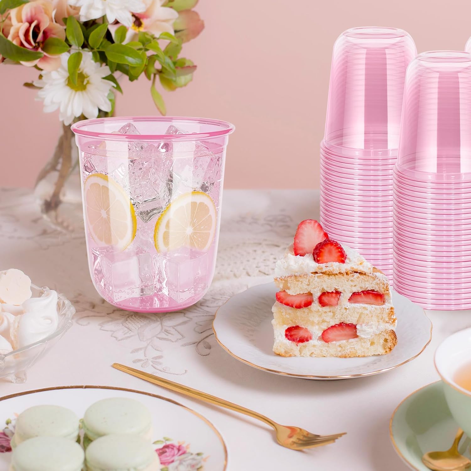 60 Pcs Disposable Stemless Clear Glasses 12 oz NATURAL Arc Crystal Plastic wine glasses Clear Classic Pet Cup for Meeting Weddings Birthdays Cocktail Christmas Party Supplies(Pink)