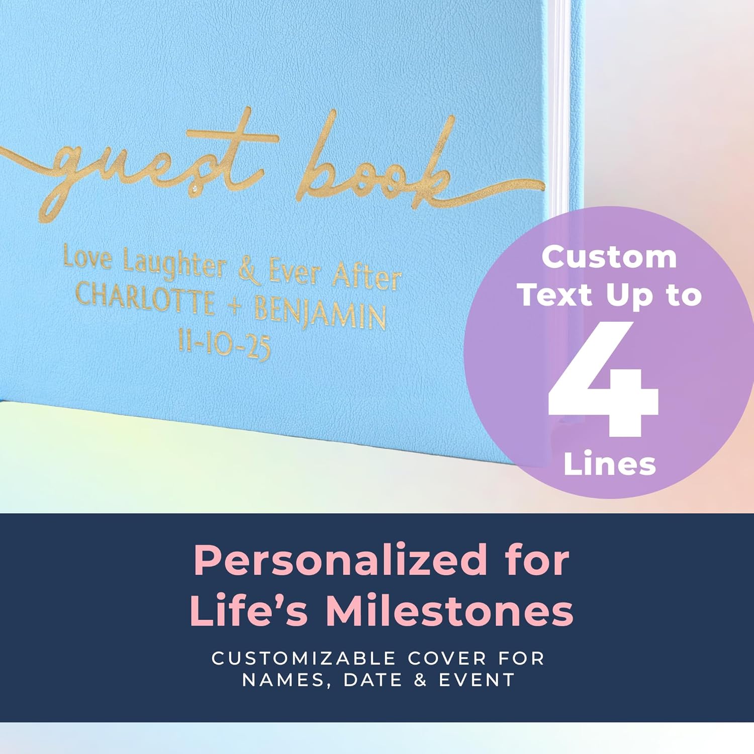 Promot Personalized Guestbook for Party (Baby Blue) - 110 Lined Pages in Wood-Free Vegan Leather Hard Cover - Wedding Guest Book Sign in and Photos, Baby Shower, Birthday or Graduation