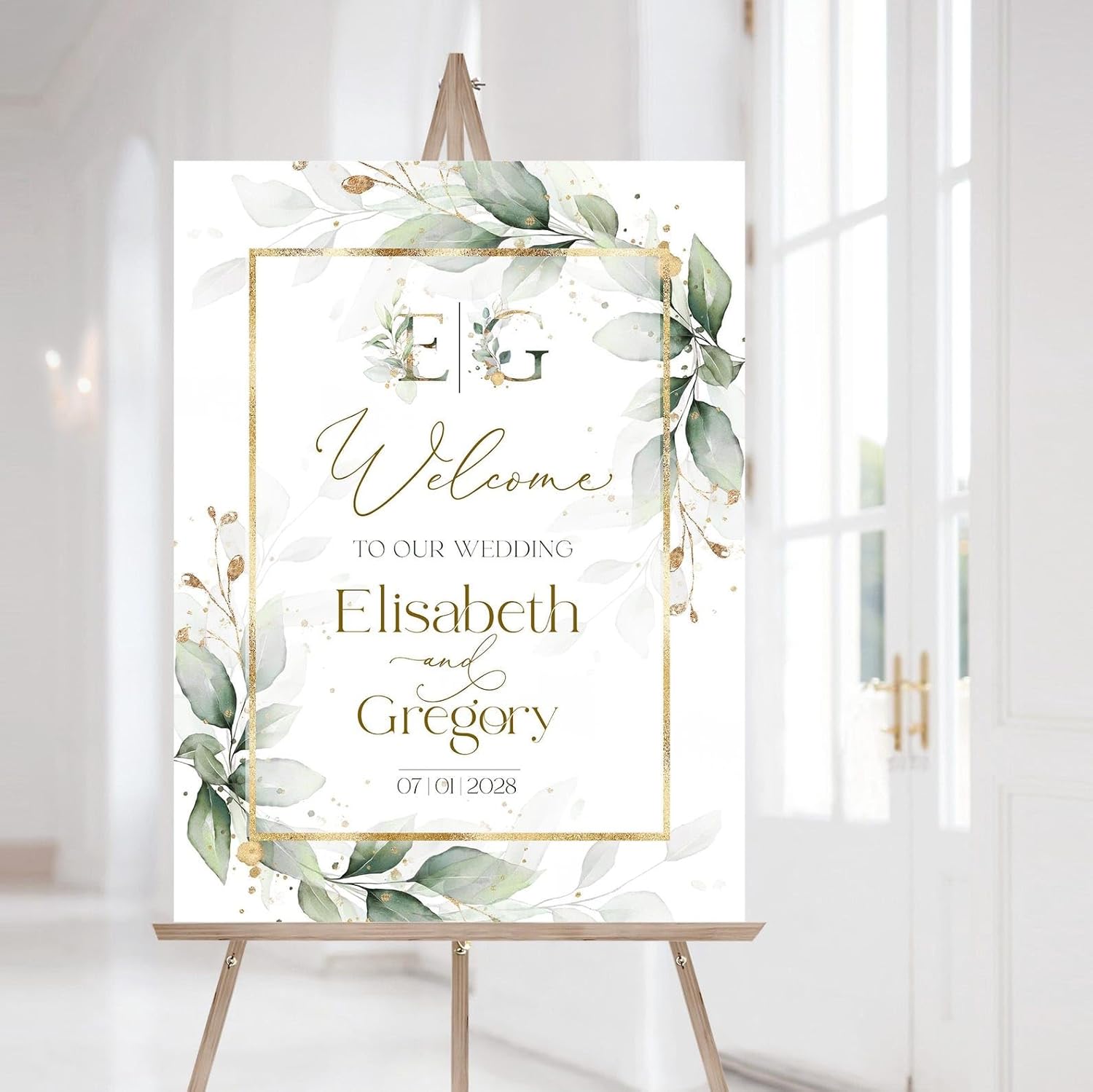 Welcome Wedding Signs, Modern Gold Sage Green Wedding Sign Decorations Signage 12" X 18" (Small), 27" (Medium), 36" (Large), Plastic, Modern, Pole Mount, Weather