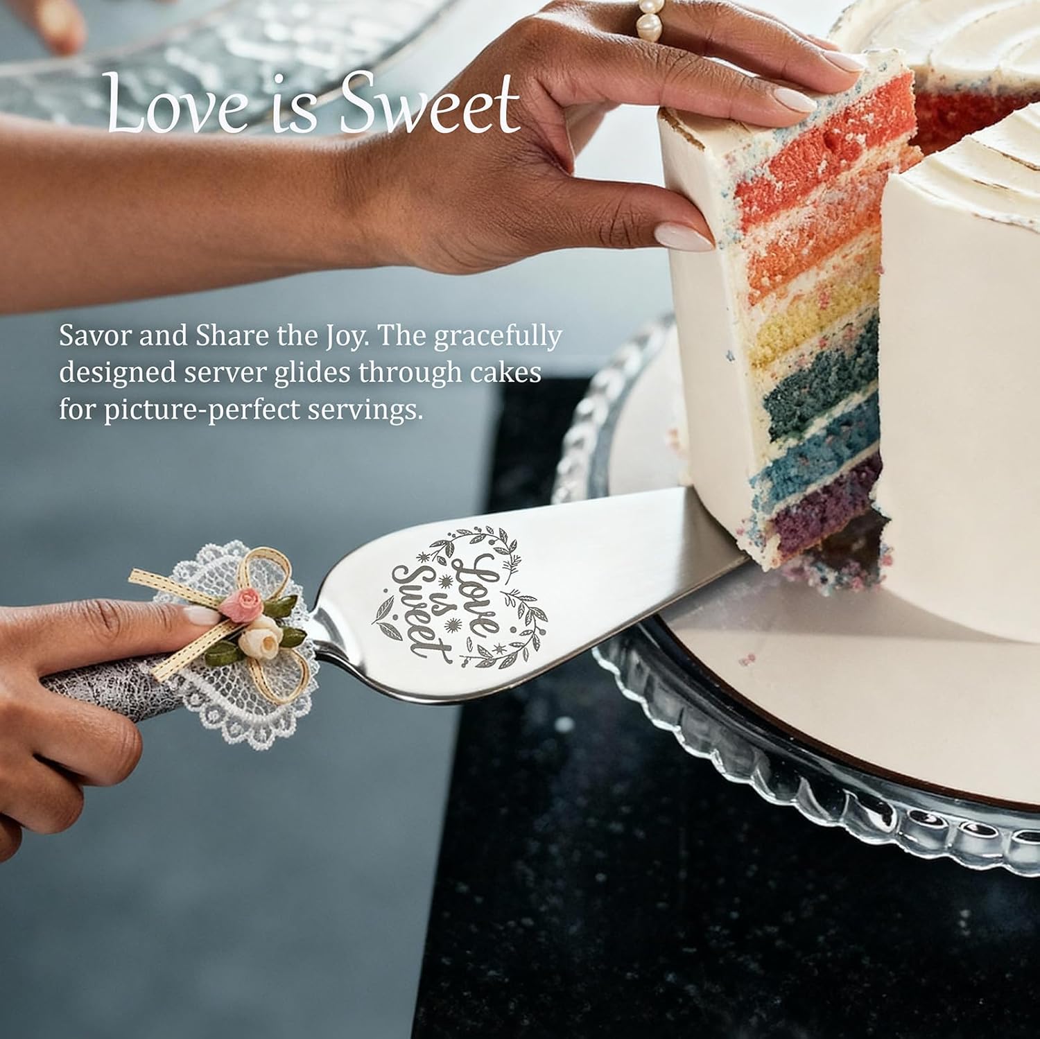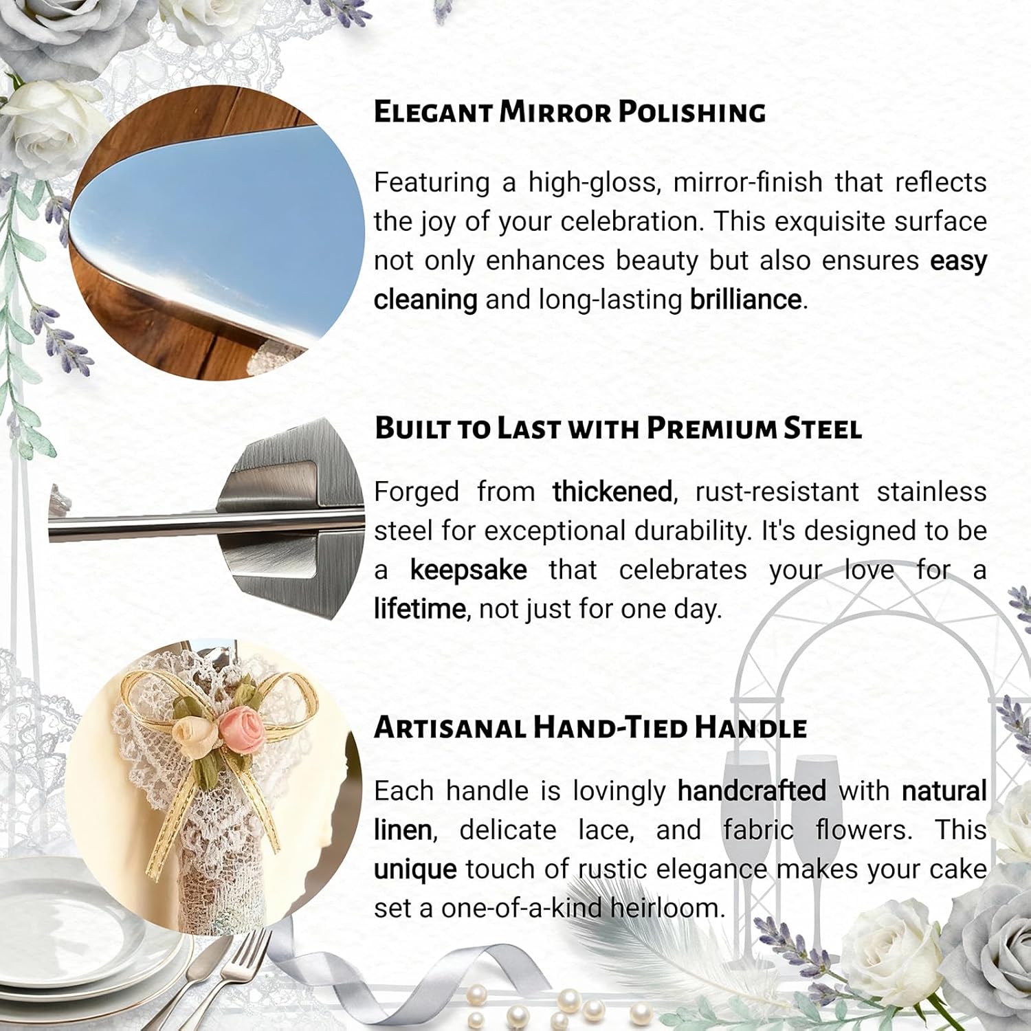 • Premium Stainless Steel Blades – Sharp, rust-resistant, and durable. Cuts smoothly through cakes for picture-perfect cake-cutting moments.