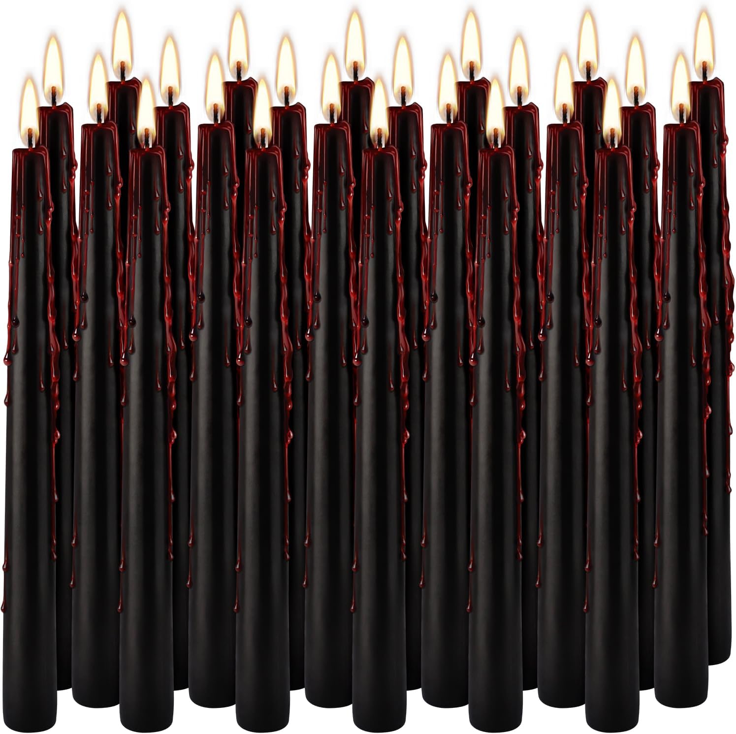 24 Pcs 10 Inch Vampire Blood Taper Candles Vampire Blood Candle, Ritual Spell Unscented Candle Halloween Spooky Decor for Haunted House, Gothic Theme Party.