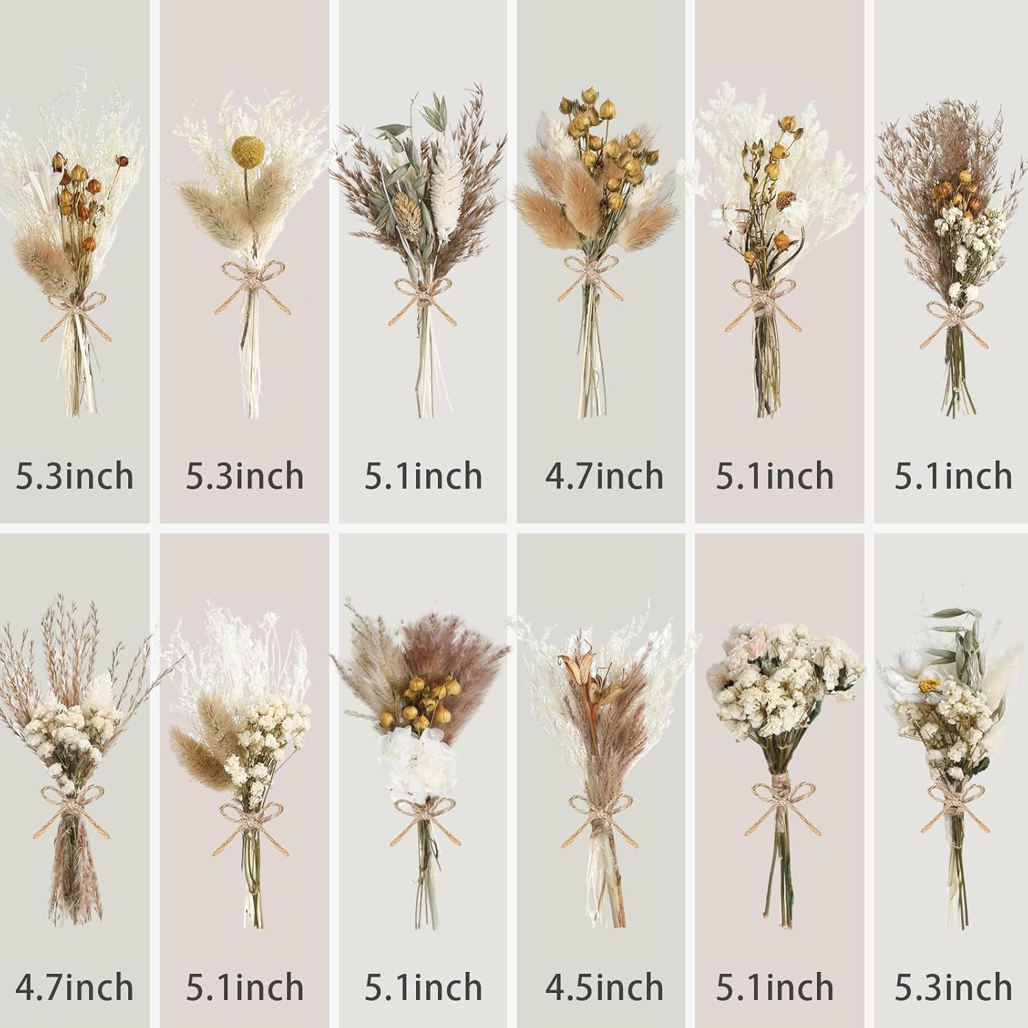 10/12/24/36 Pack Mini Dried Flowers for Vase Wedding Various Mini Bouquet Dried Small Wildflowers Natural Flowers Bulk for Crafts DIY Decor (36, Plain Colour)